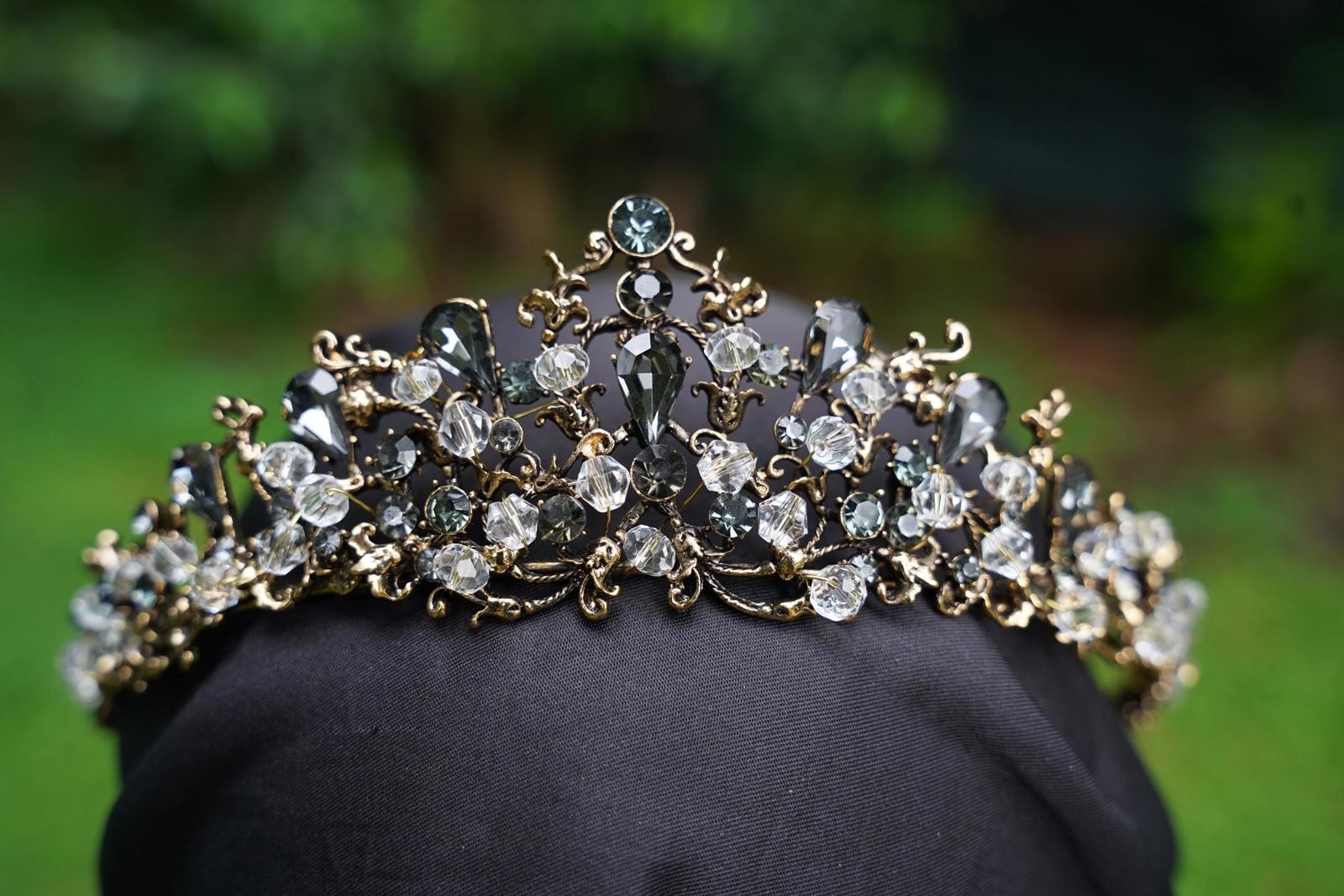 Vintage Gray Crystal Tiara Bridal Goth Crown Birthday Wedding Gift Diadem prom