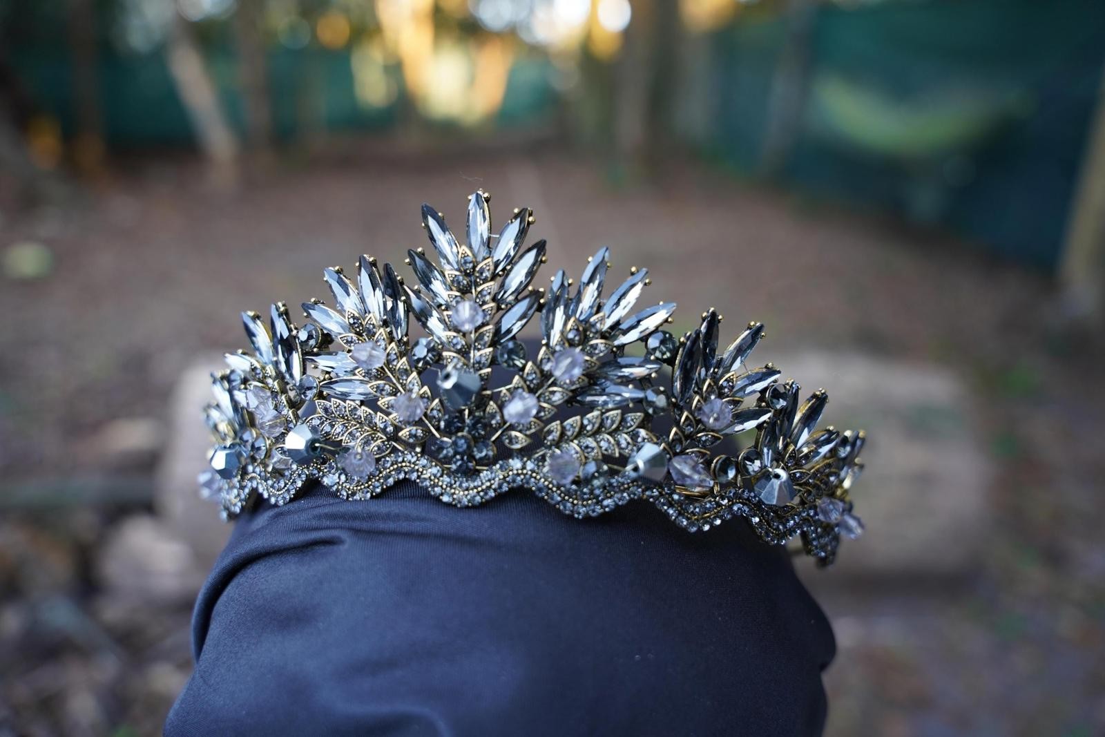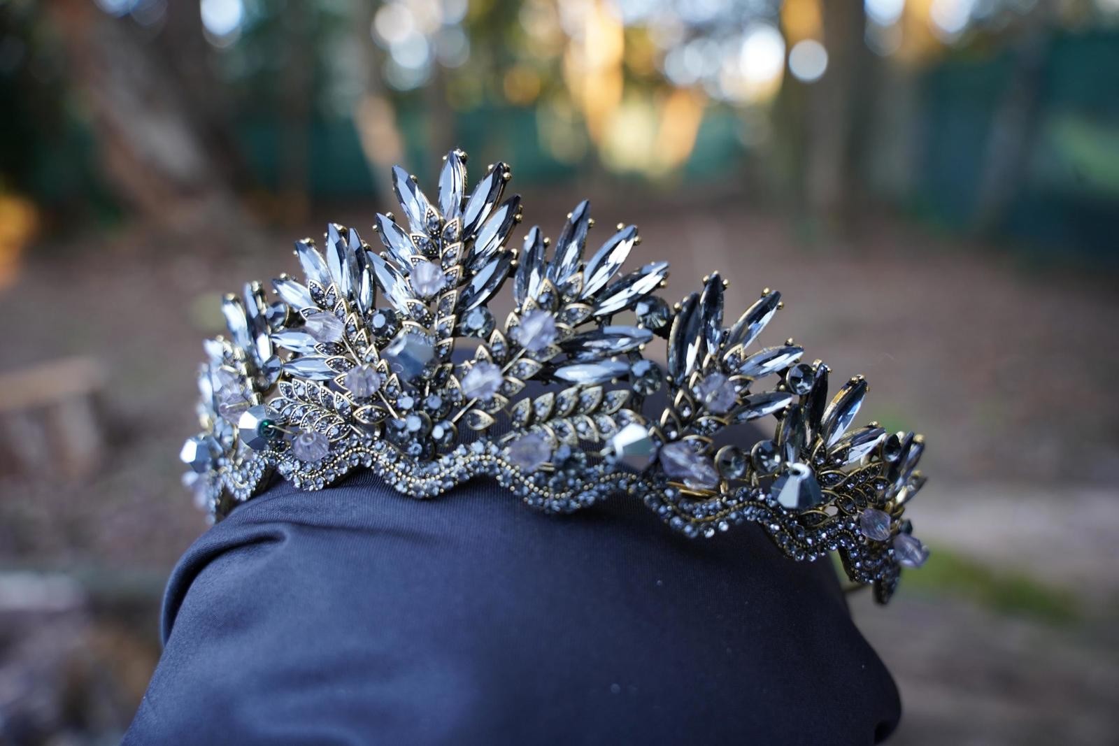 Stormy Gray Crystal Tiara Spiky Goth Bridal Crown Birthday Wedding Gift Diadem