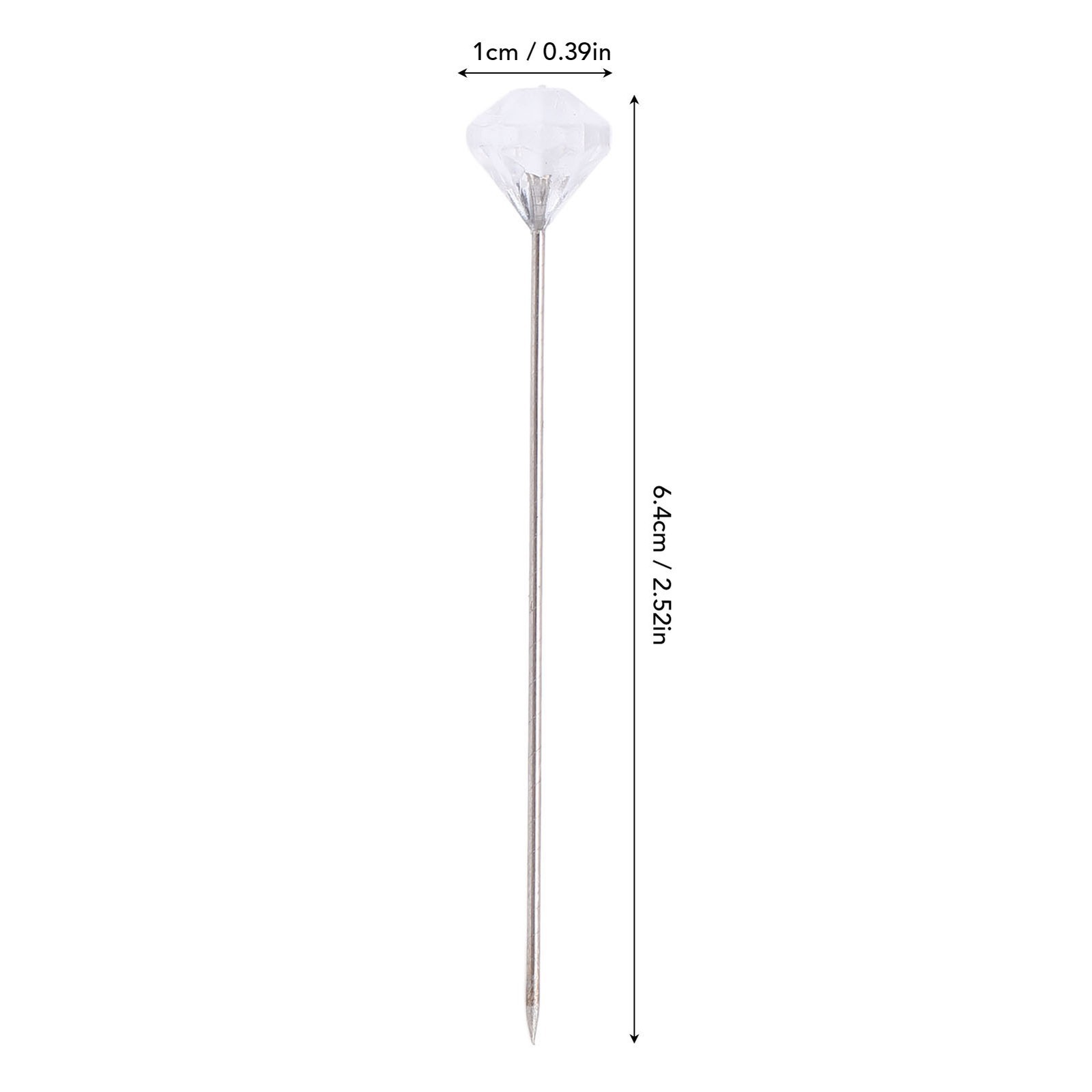 100 Pcs Bouquet Pin 10x64mm Transparent Rhinestone Straight Pins for Wedding