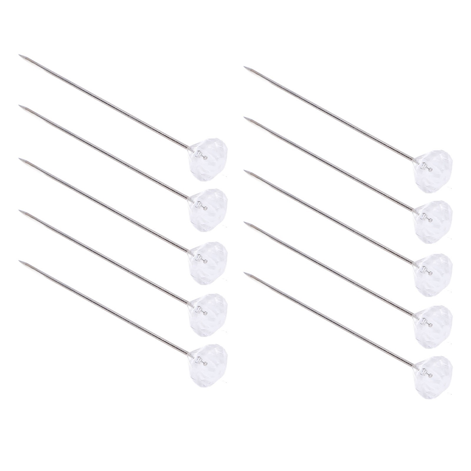 как выглядит 100 Pcs Bouquet Pin 10x64mm Transparent Rhinestone Straight Pins for Wedding фото