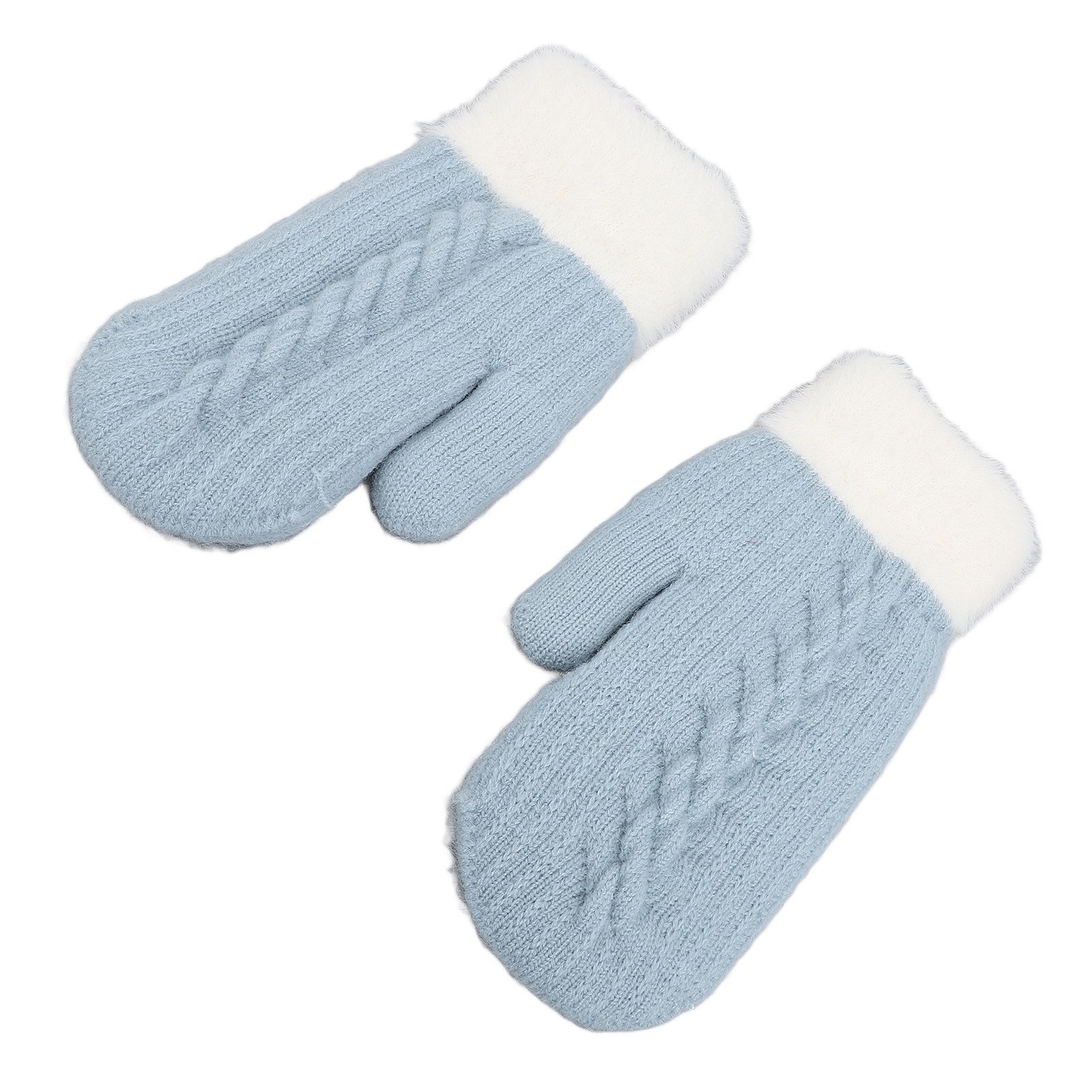 Mitten Double Sided Cute Knit Thick Velvet Warm for Women Mint