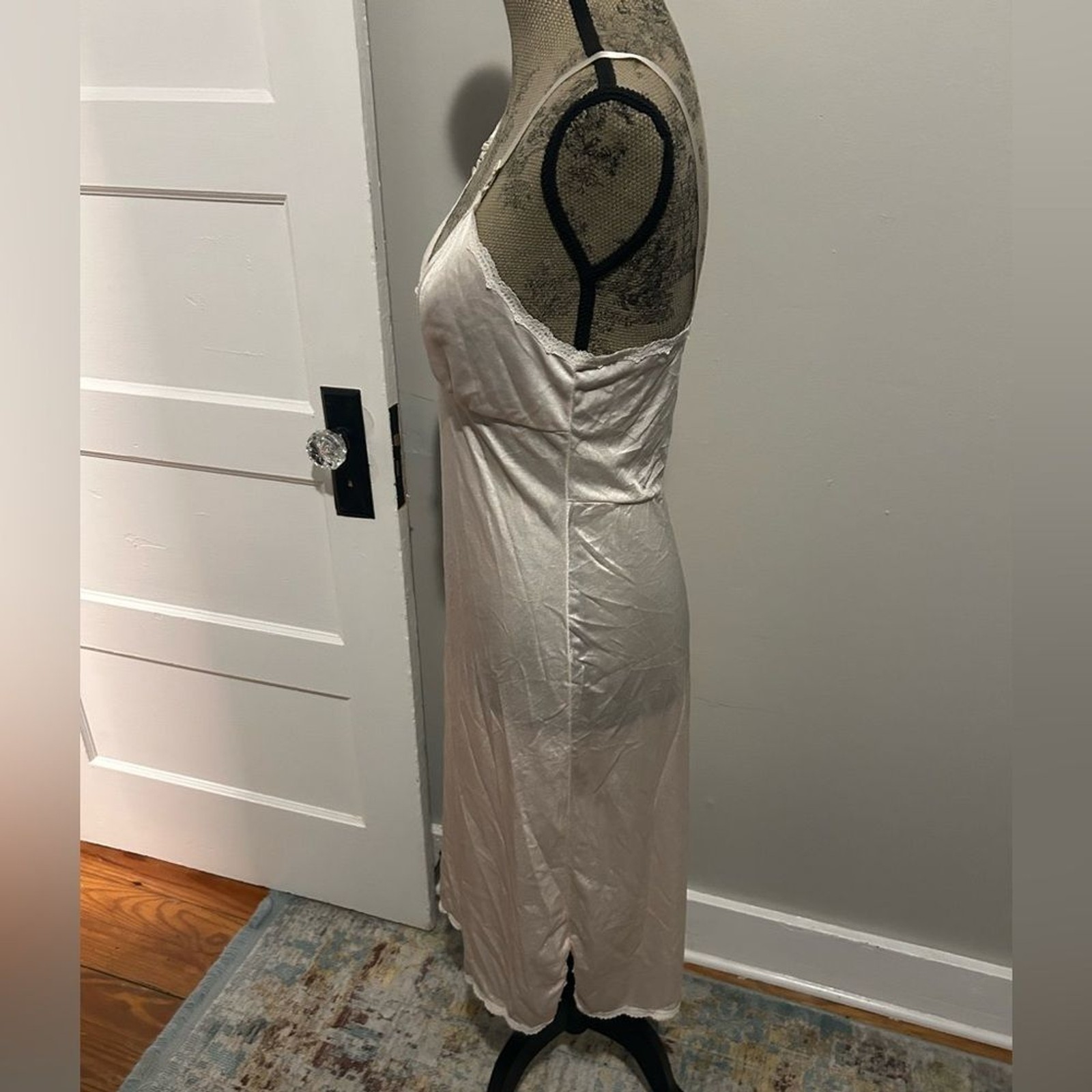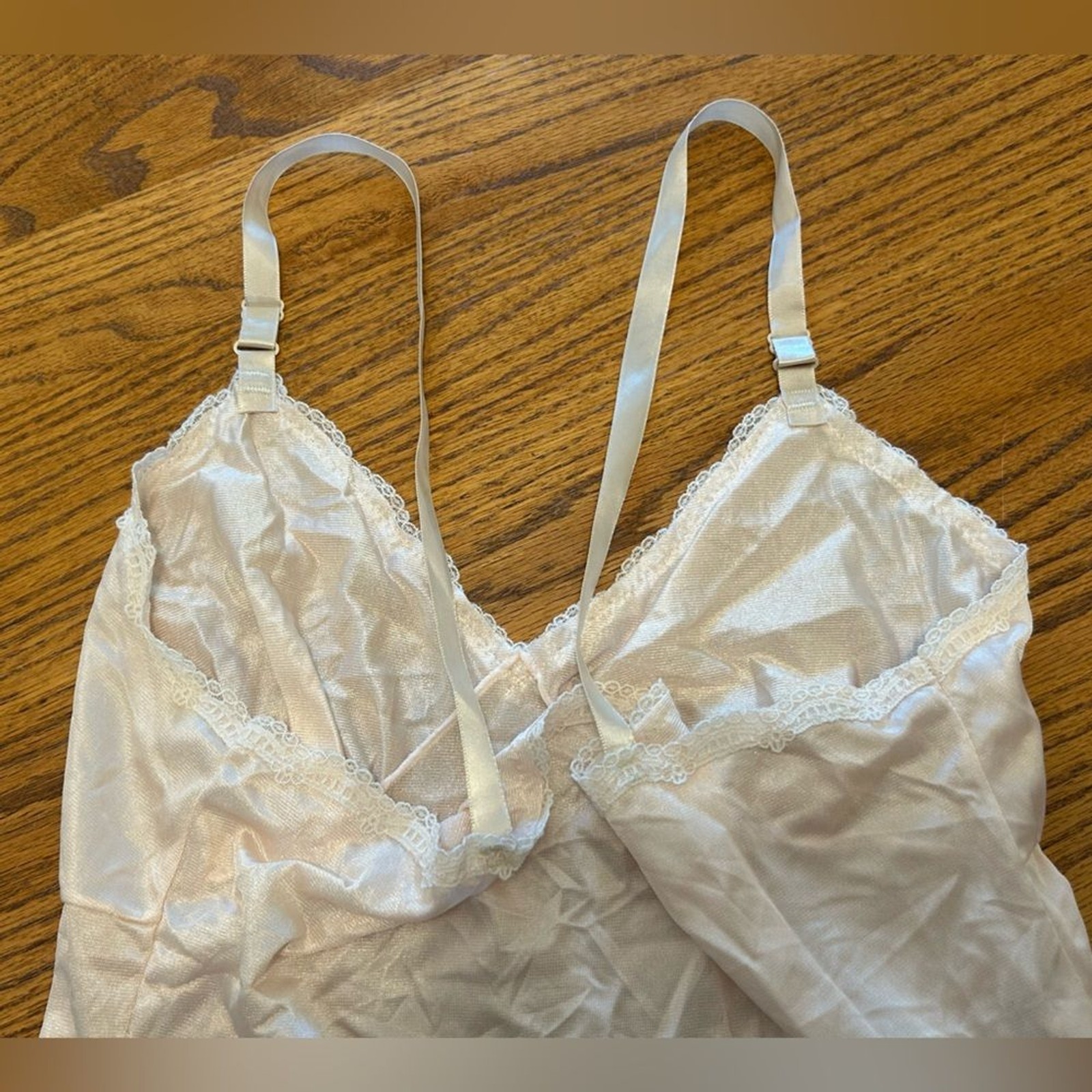 как выглядит Vintage Dixie Belle Pink Cream Lace Trim Camisole Nylon Slip Dress фото