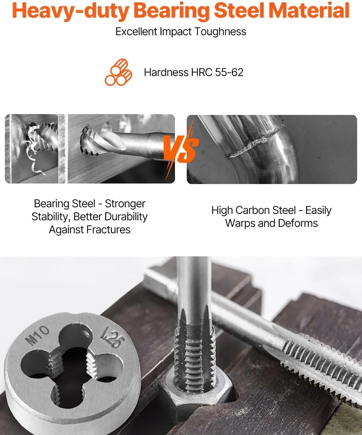 Tap and Die Set 40Pcs Metric Size M3 to M12 Bearing Steel Threading Tool