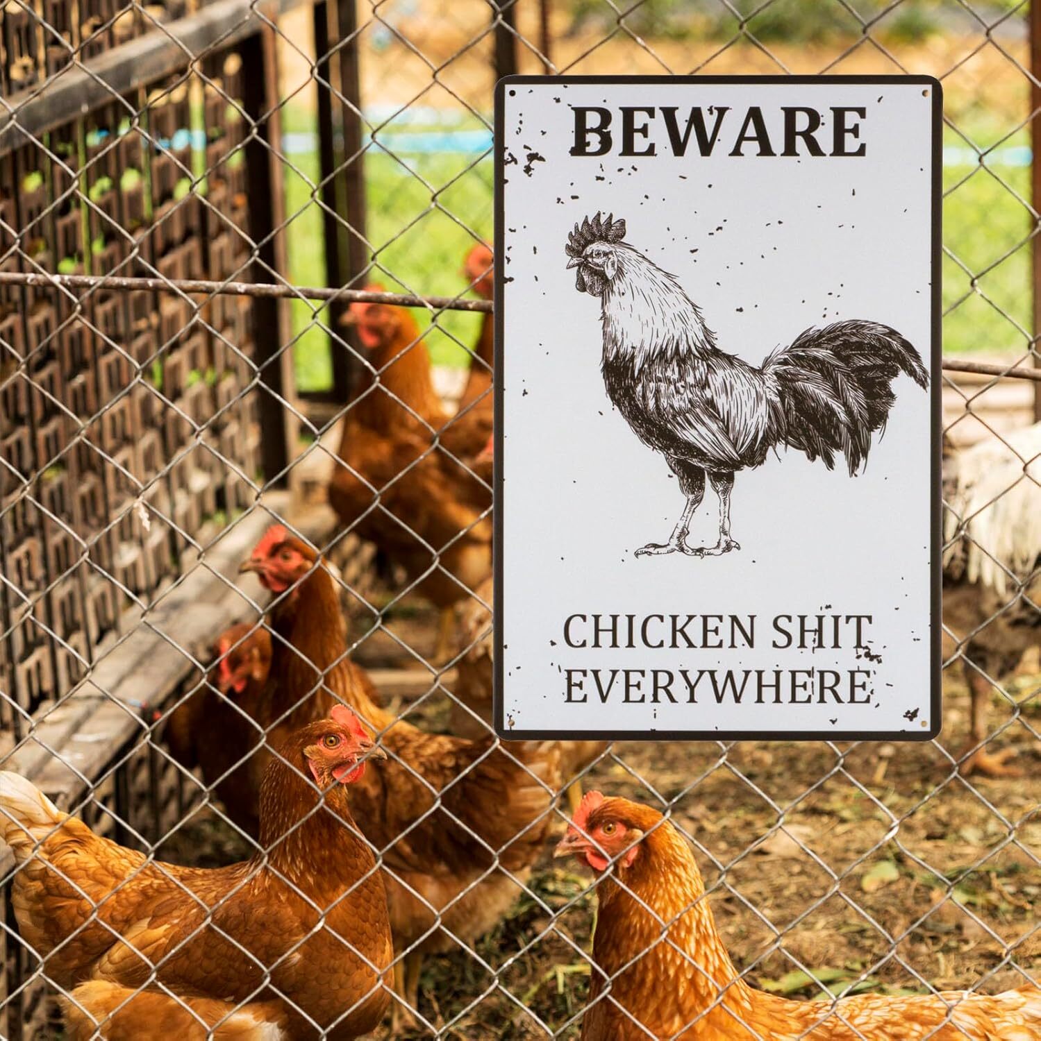 • Beware Chicken S t Everywhere Sign,Funny Chicken Coop Retro Tin Metal Signs