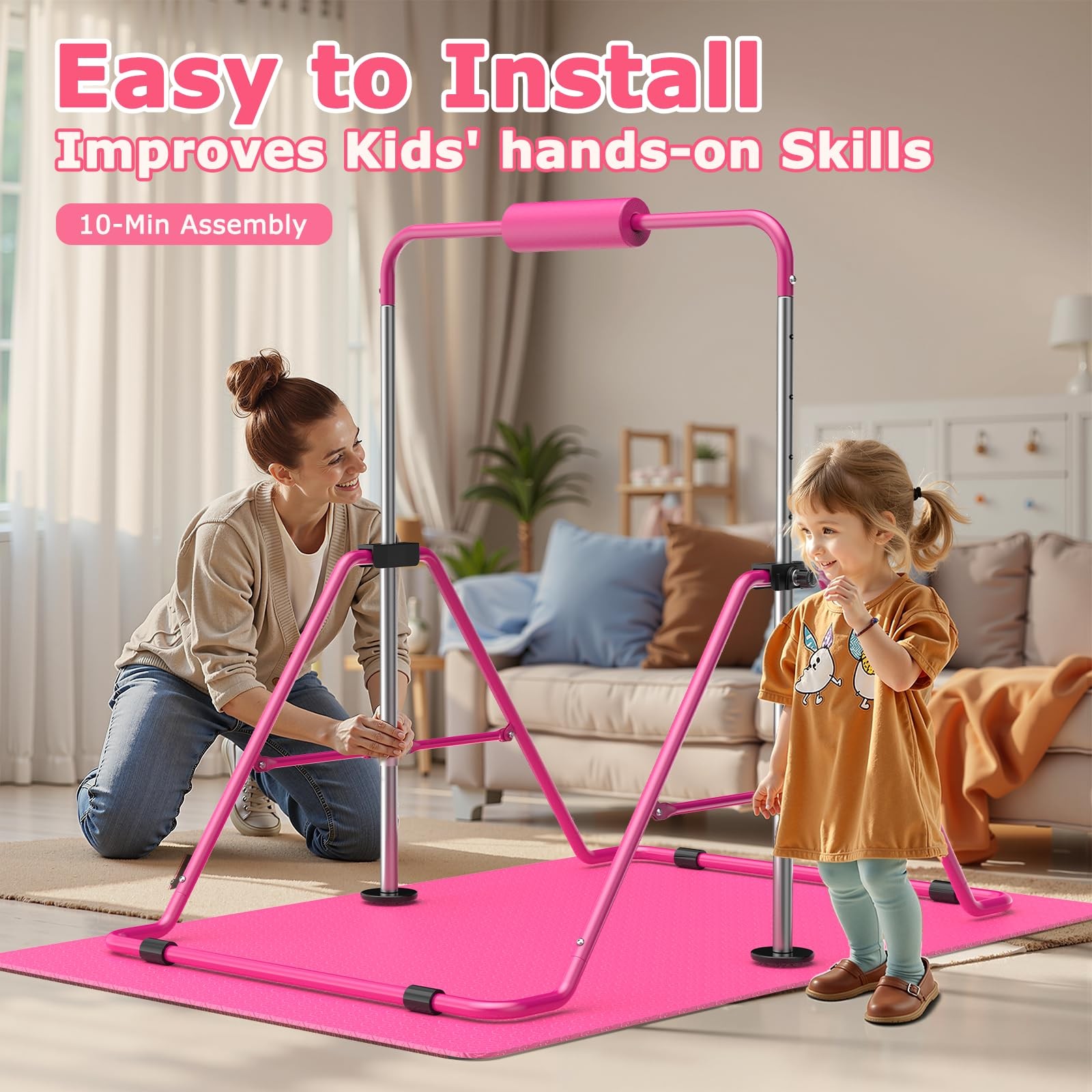 как выглядит Sportsroyals Gymnastics Bar for Kids,Adjustable Height Gymnastic Horizontal B... фото