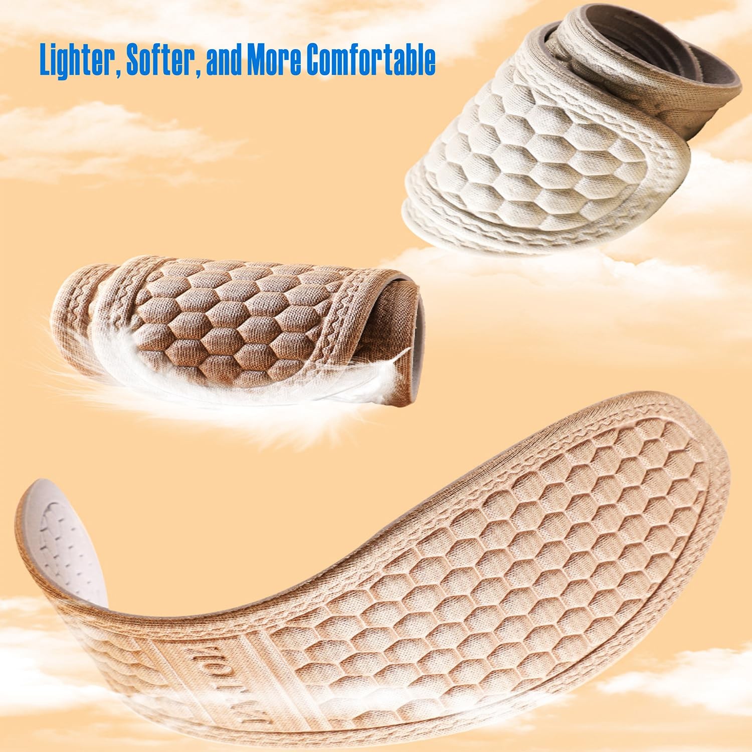 как выглядит 3 Pairs Super-Soft Shoe Insoles Inserts, Breathable, Sweat-Absorbent, Two-Lay... фото