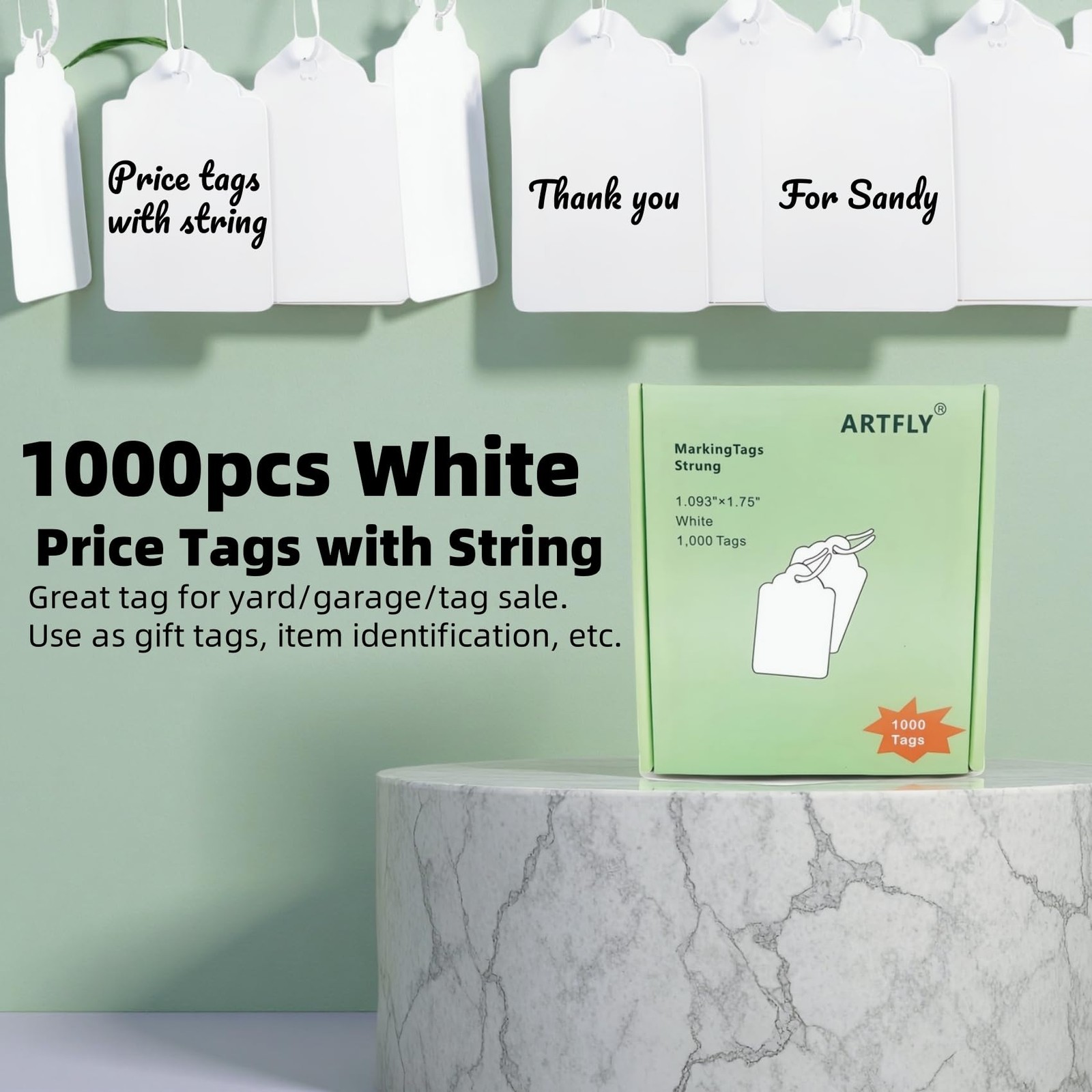 1000PCS Pre-Strung Price Tags with String, White Paper Label Tags for Garage ...
