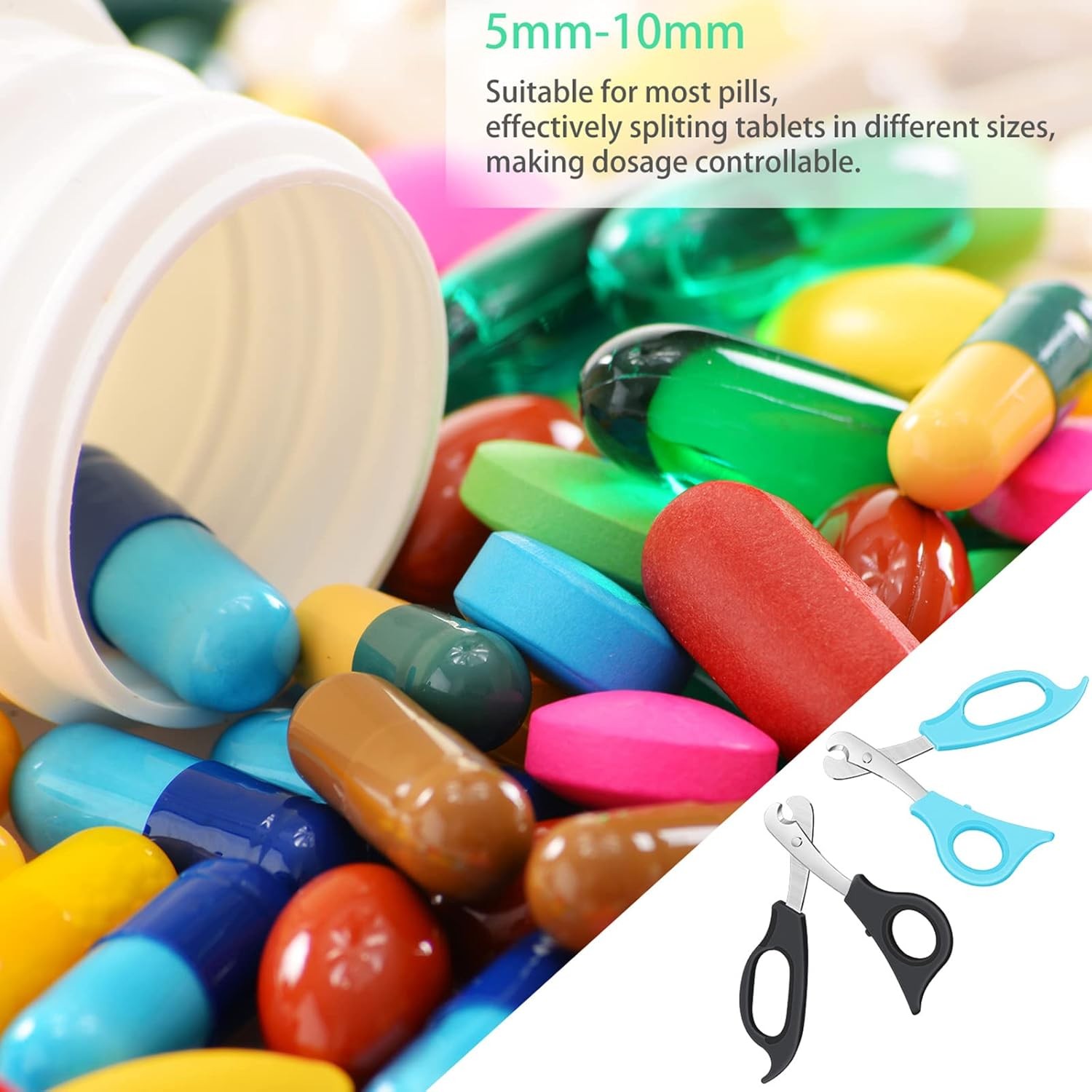 2 Pieces Pill Splitter Scissors Cutter with Black, Sky Blue