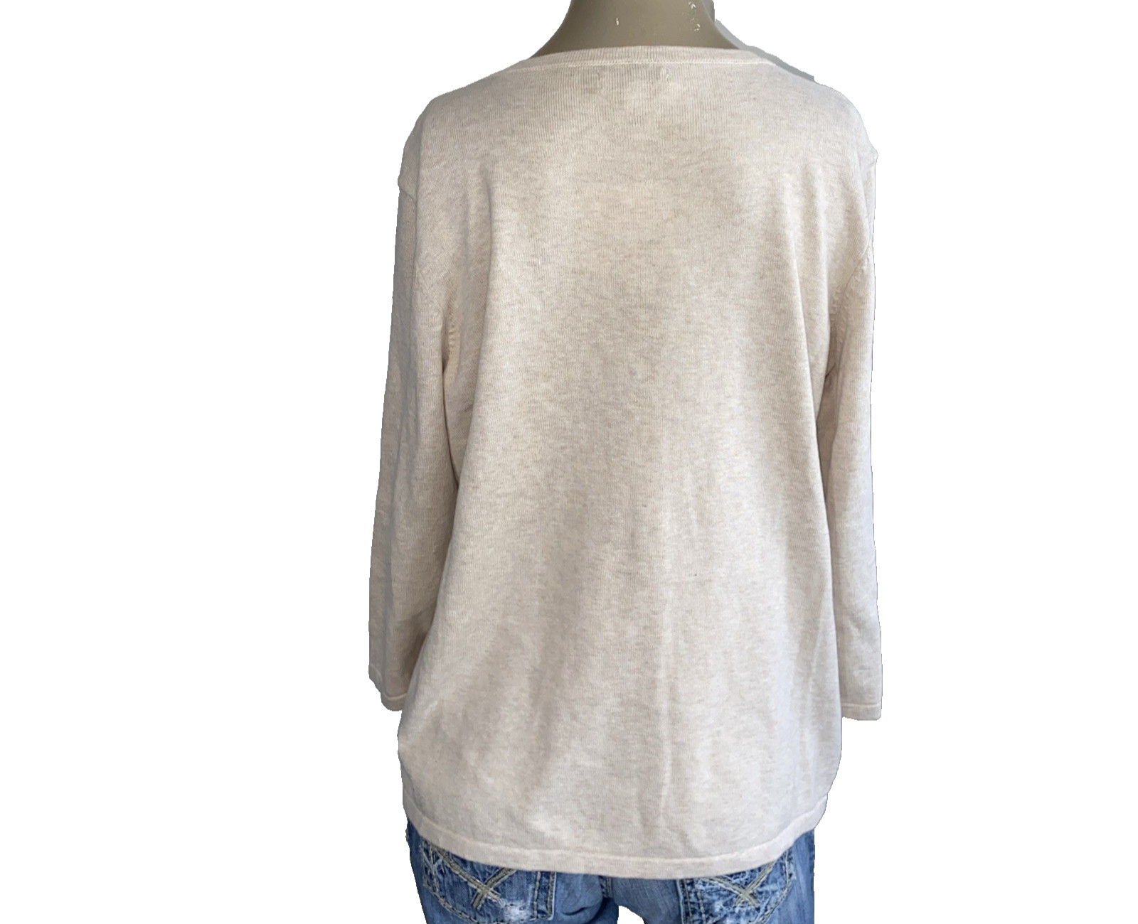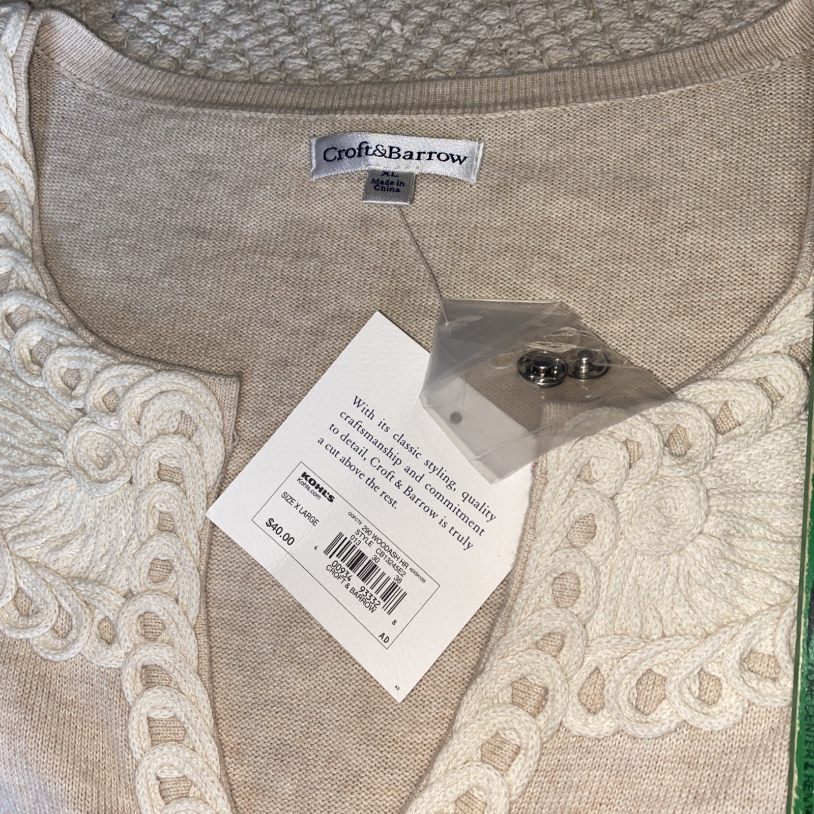 как выглядит Croft Barrow Snap Front Crochet Trim Sweater Cardigan Oatmeal Cream Women XL фото