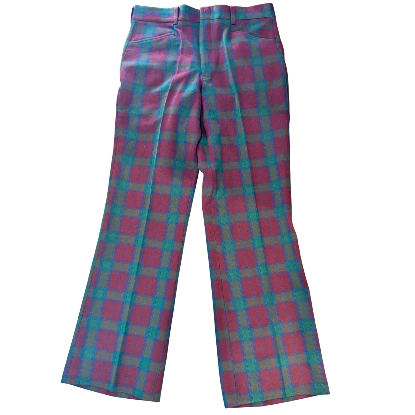 NOS Kings Road Dbl Knit Dress Pants Slacks 36 L Green Plaid Vtg 60/70's Flare TR