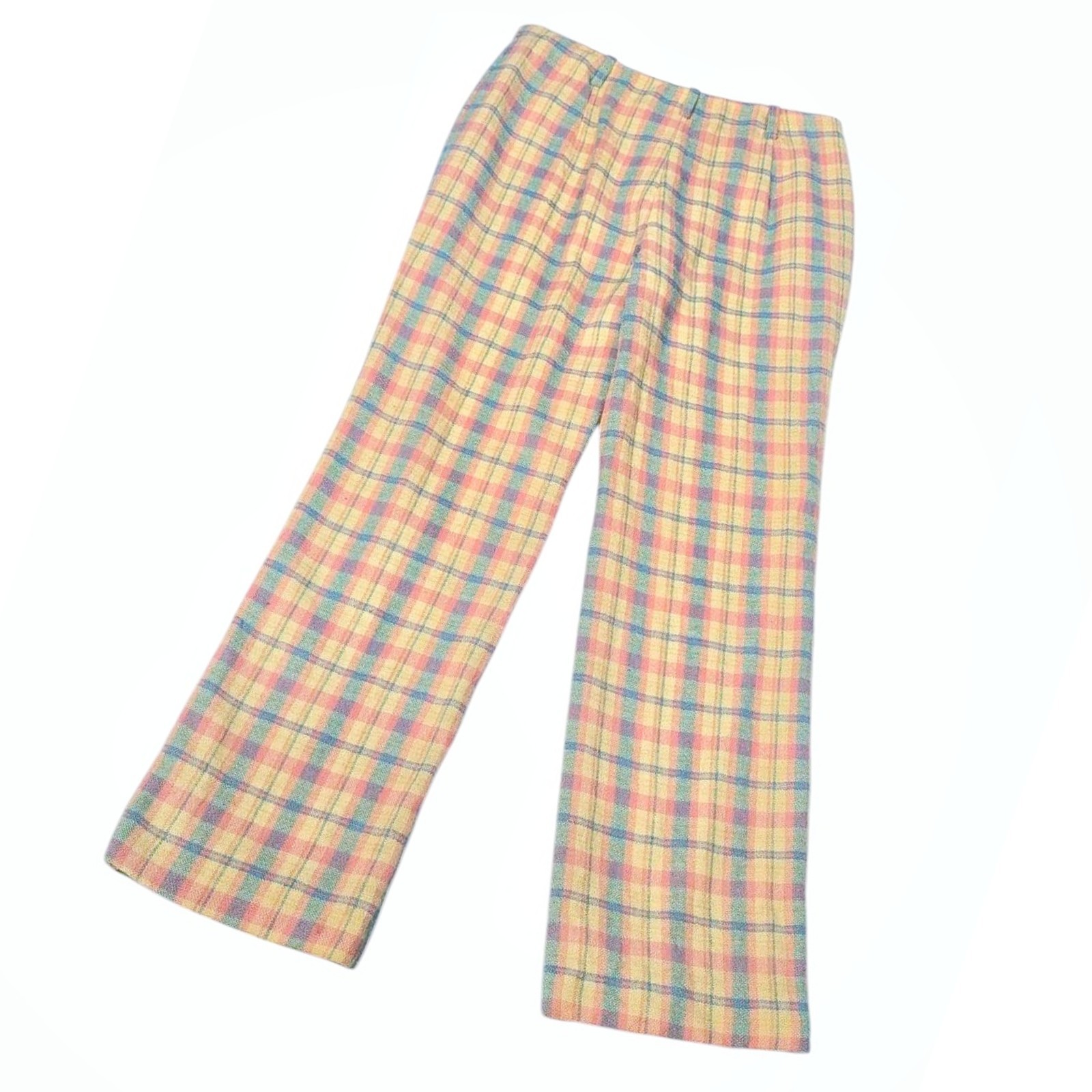 1960s Vintage Pants 60s Mod The Villager Pastel Plaid Trousers Small Medium S/M