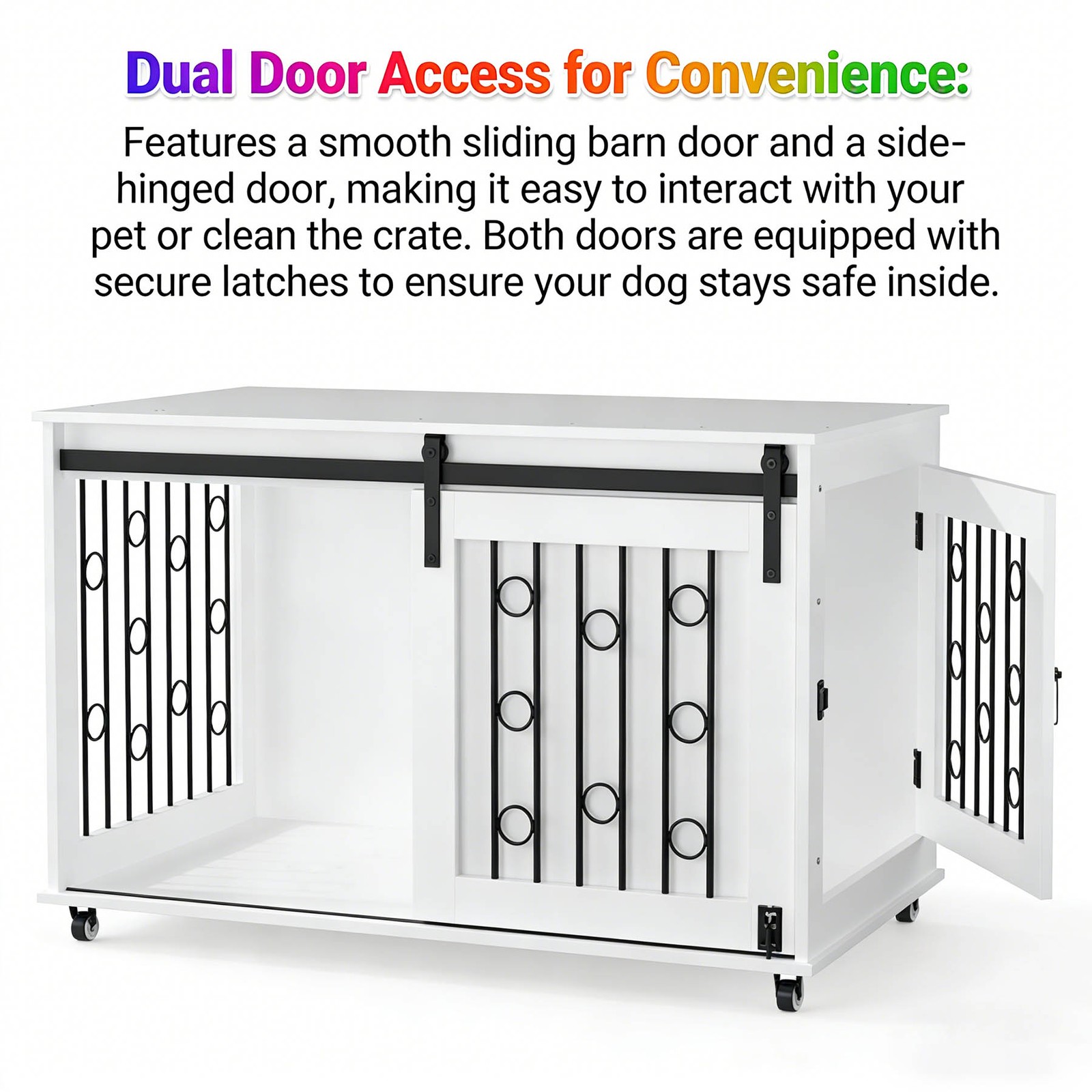 Wooden Pet Dog Cage with Sliding Barn Door and Side Door