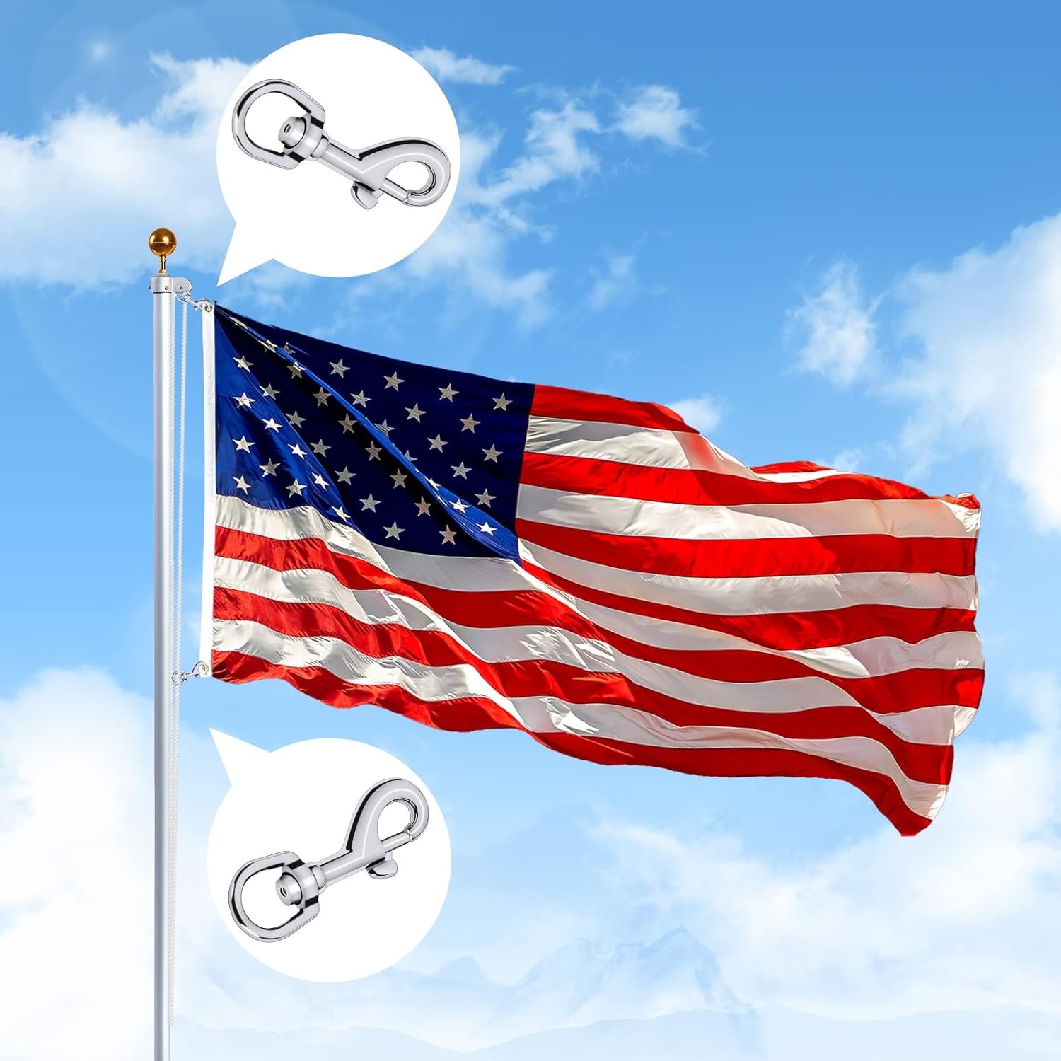 NQ Flag Swivel Snap Clips - Heavy Duty Metal Snaps Hooks 2pieces, Silver