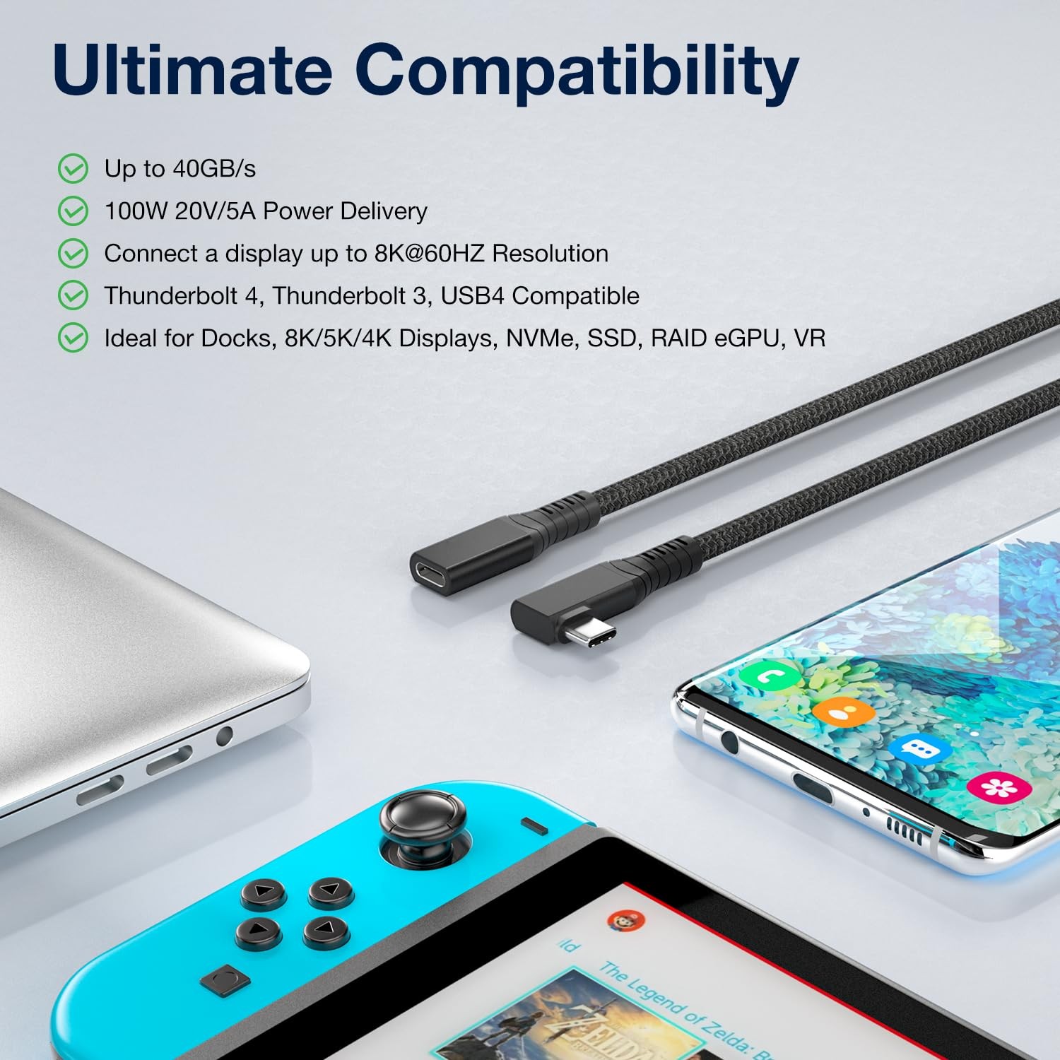 Special Feature: 240 w fast charge 40 gbps super speed data sync 8 k 60 hz vi