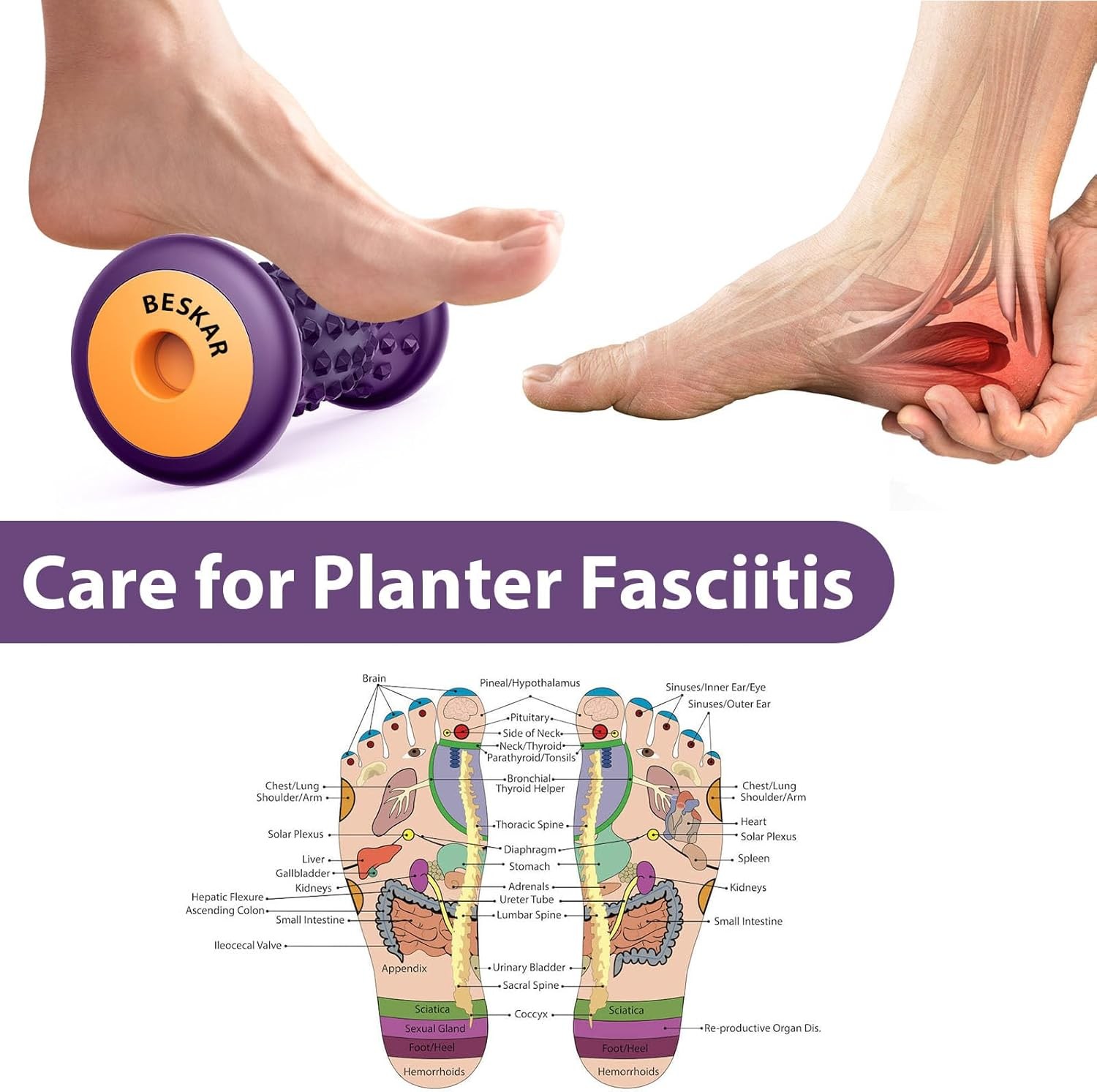 BESKAR Foot Massage Roller for Relief Plantar Fasciitis, Grape