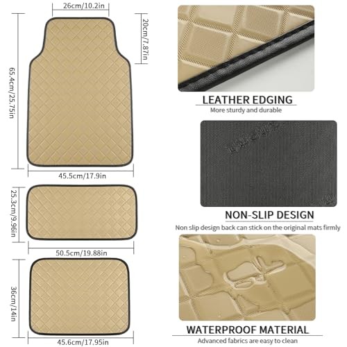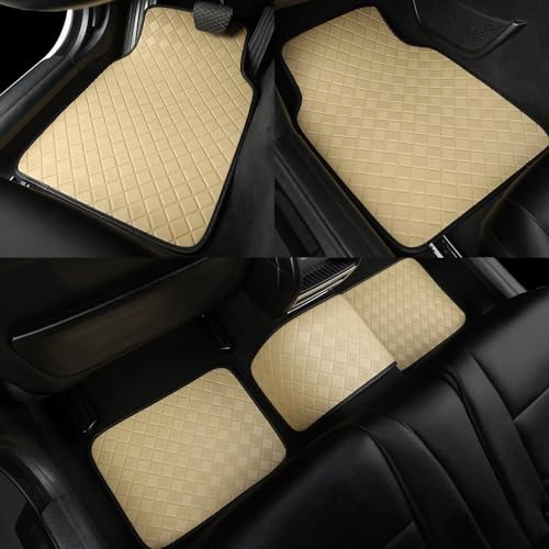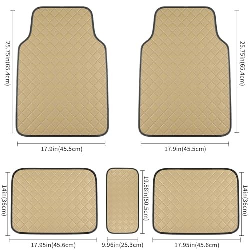 Waterproof Faux Leather Car Floor Mat Full Set,Durable All-Weather Beige