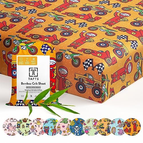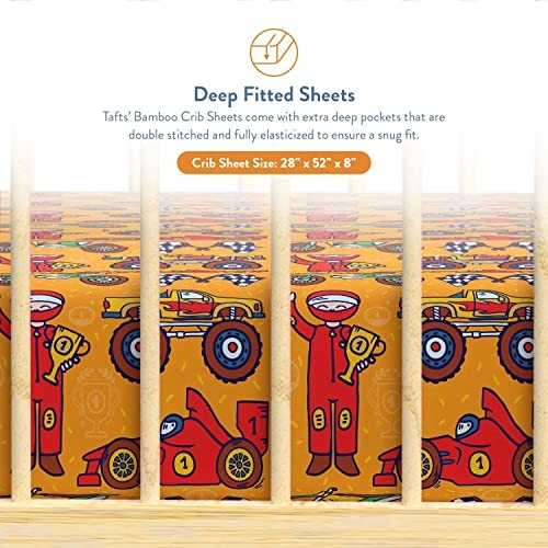 100 Viscose Fitted Crib Sheets, Girls, Boys Unisex, 8 Inch Deep Racecar