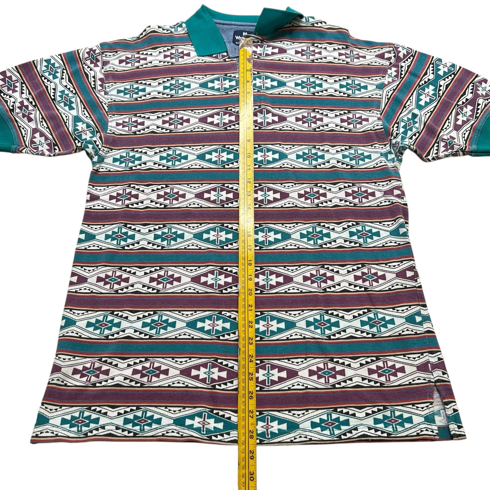 Vintage Wrangler Western Shirts Polo Shirt Men s M Aztec Southwest Pattern Retro