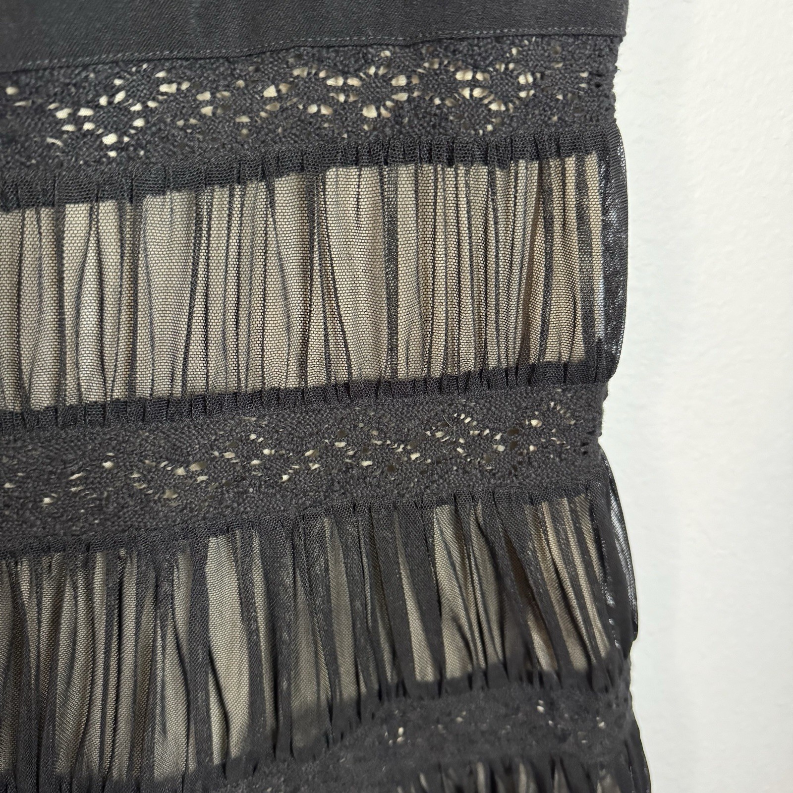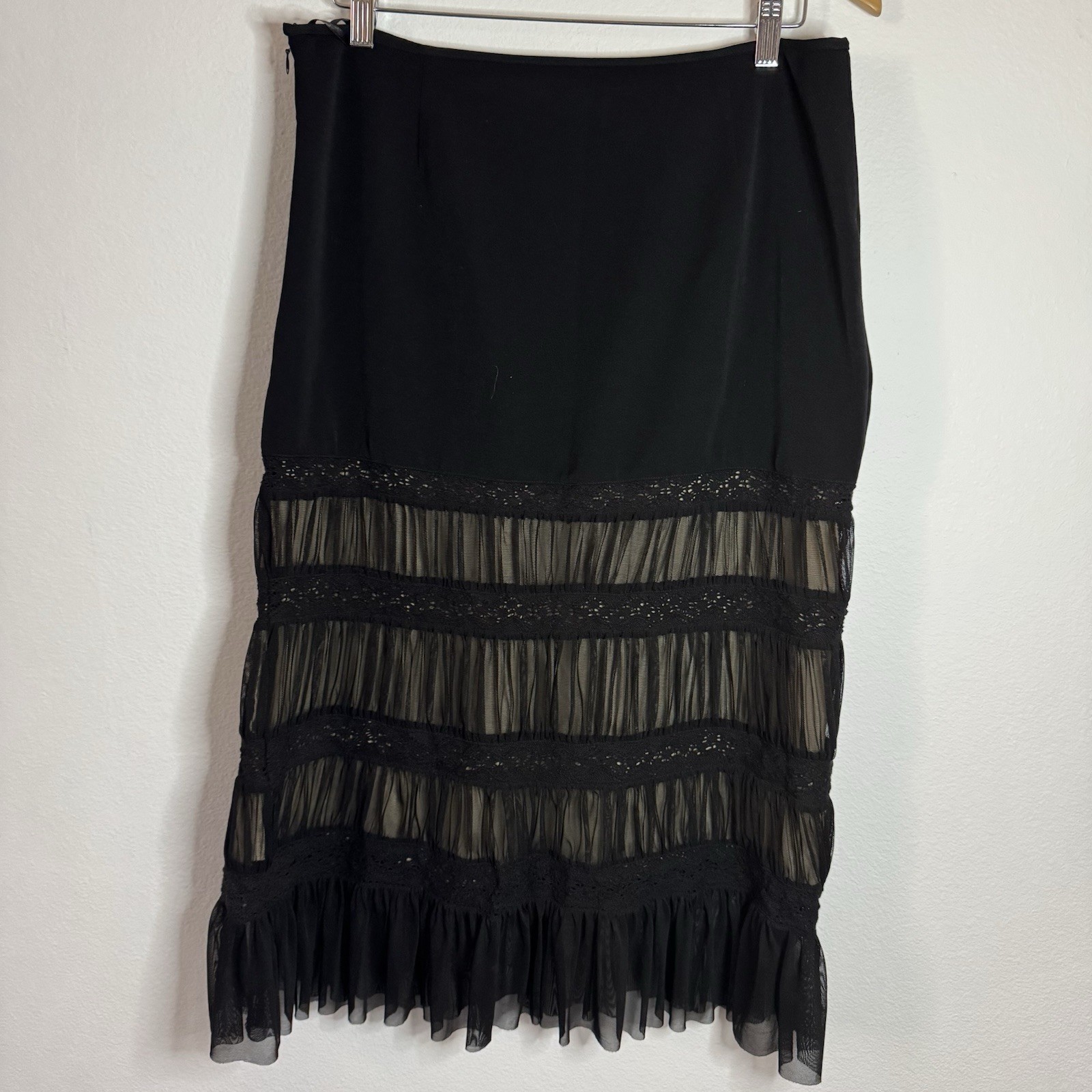 Vintage Y2K Coquette Tiered Maxi Skirt Size 12 Black Mesh Sheer Whimsigoth Goth
