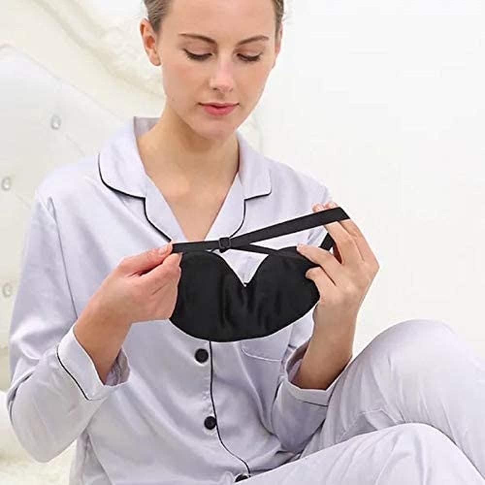 как выглядит Natural Silk Sleep Mask Black, Super Smooth Blindfold,Soft for Deep Sleep Travel фото