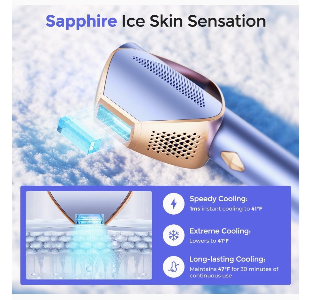 Laser Hair Removal Women and Men, Sapphire Ice-Cooling Contact IPL Hair Removal,