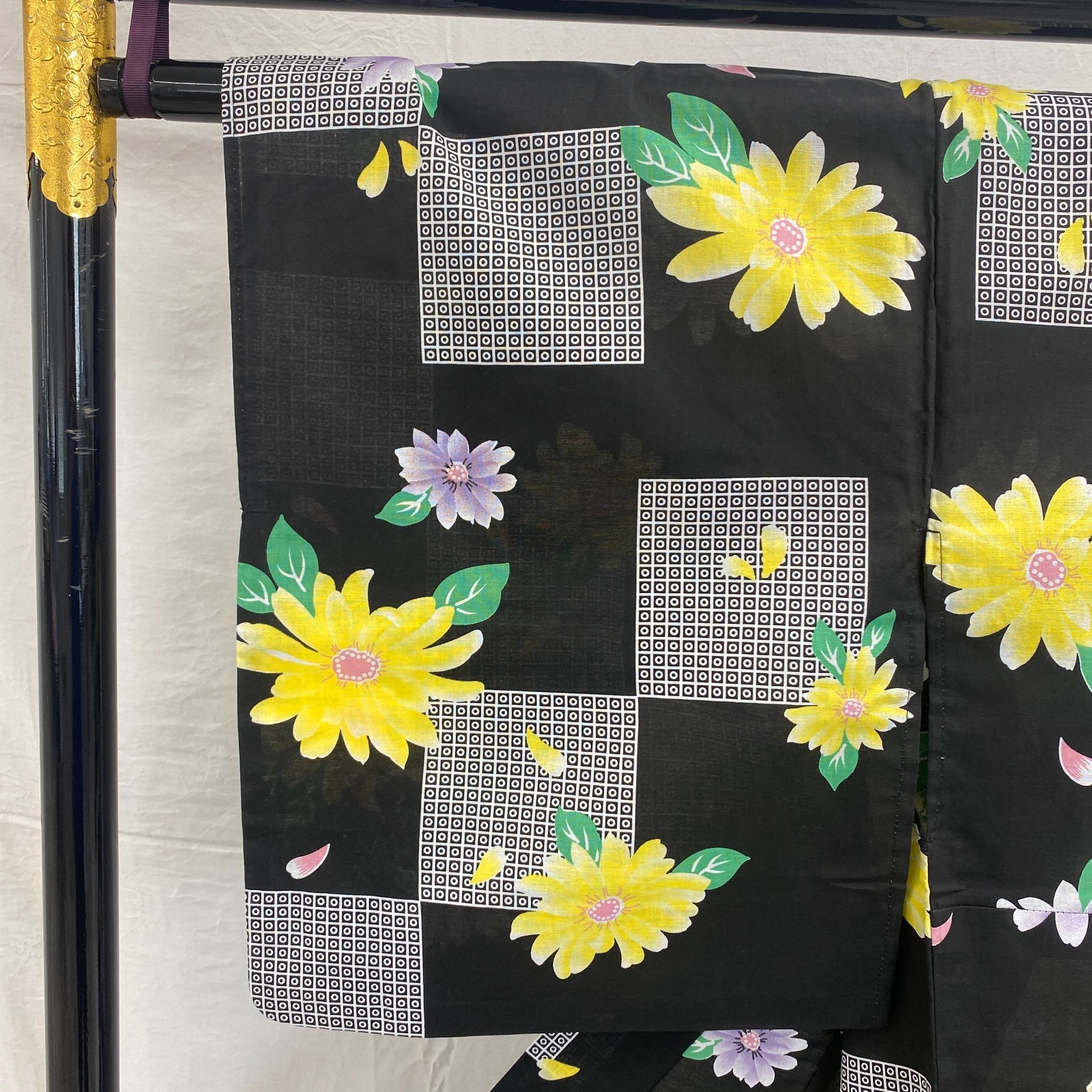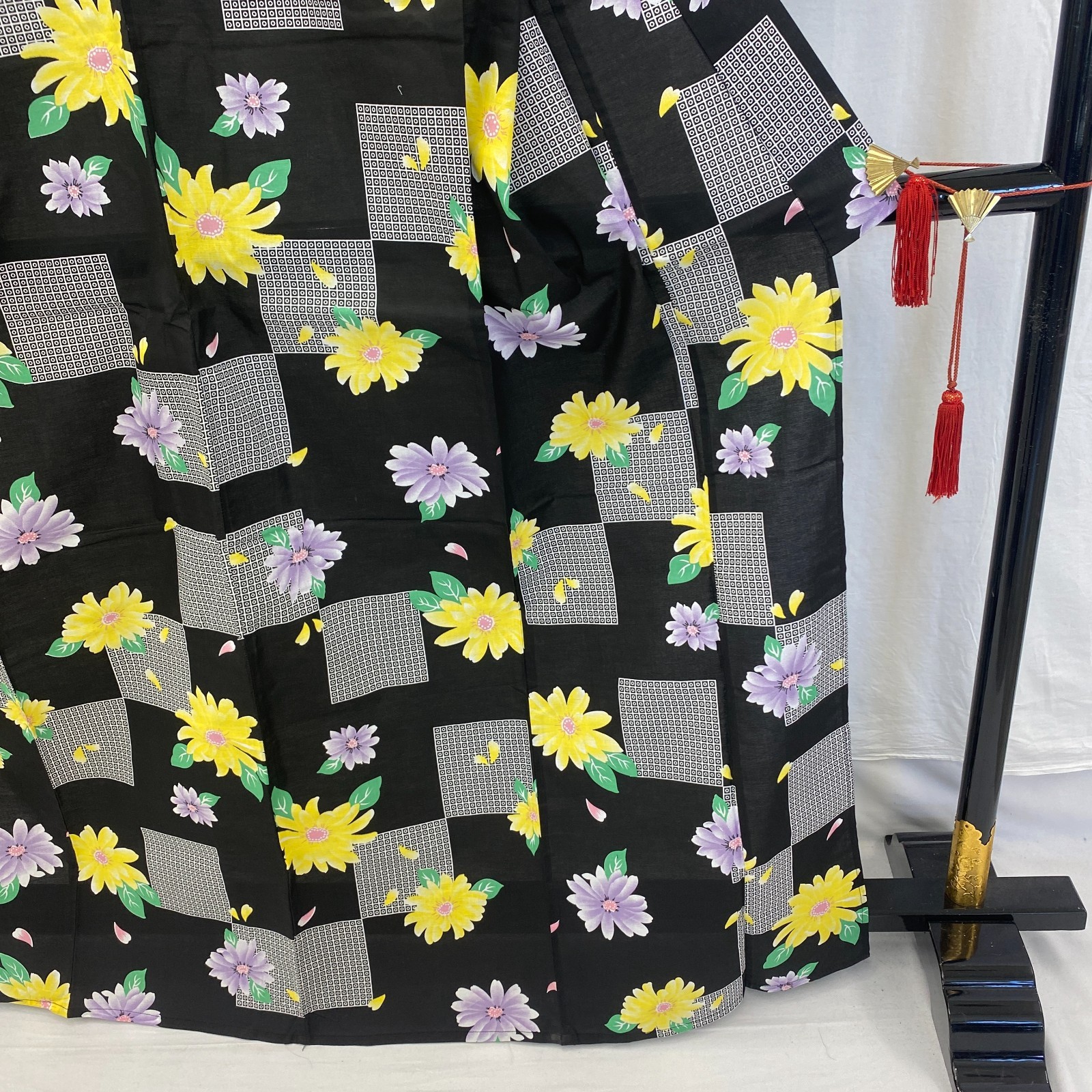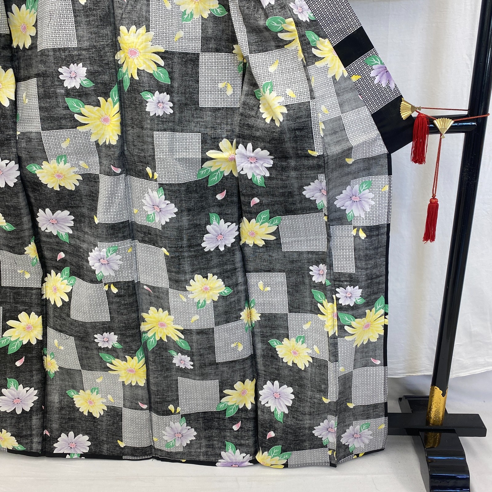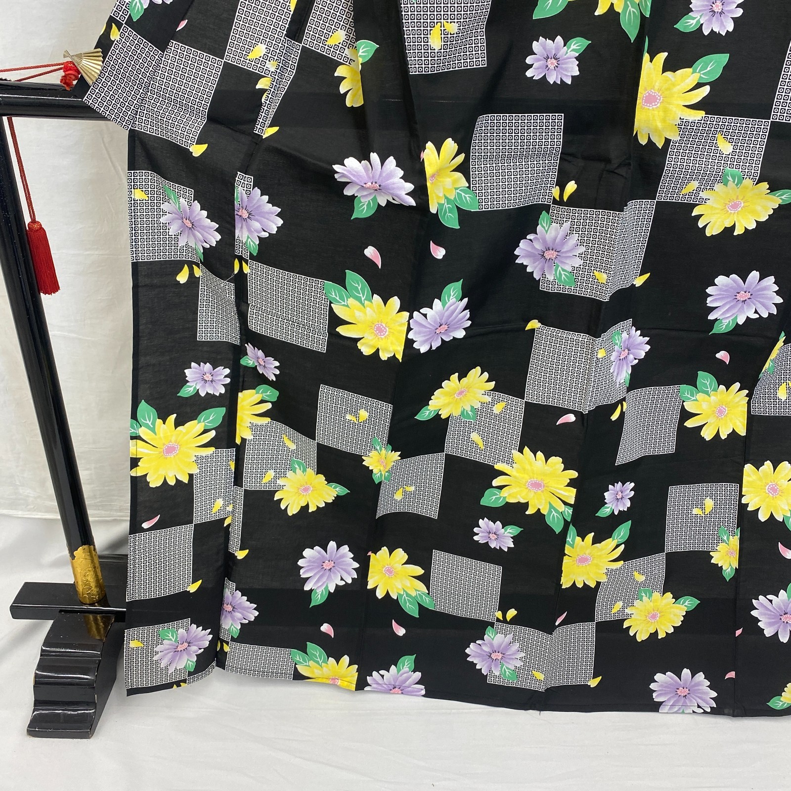как выглядит Japanese Vintage Kimono Yukata Cotton Black No Lining Traditional Length 65 in фото