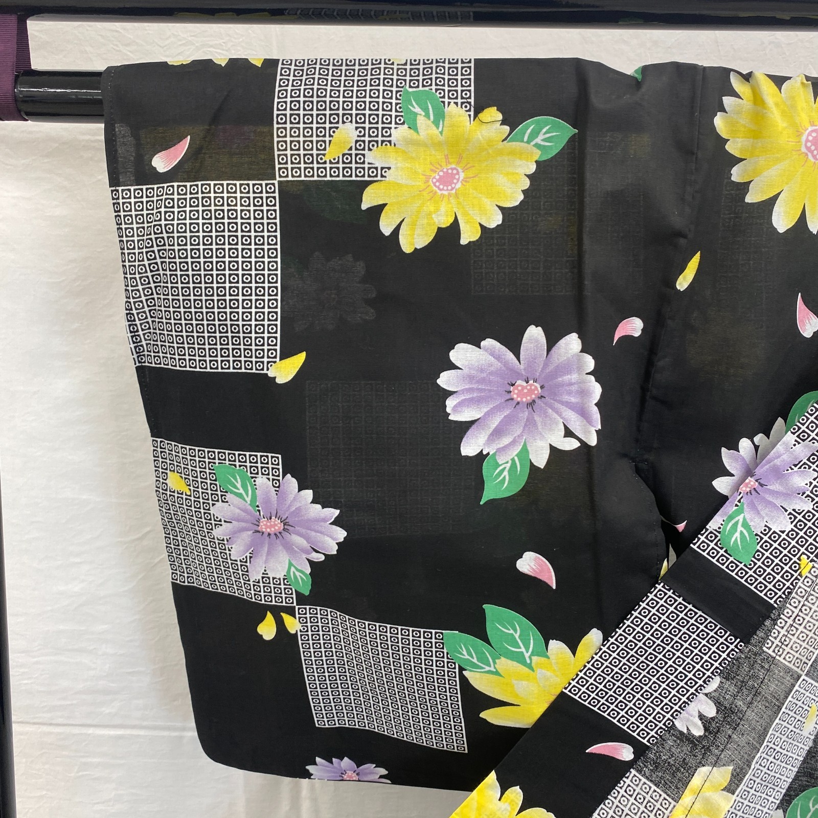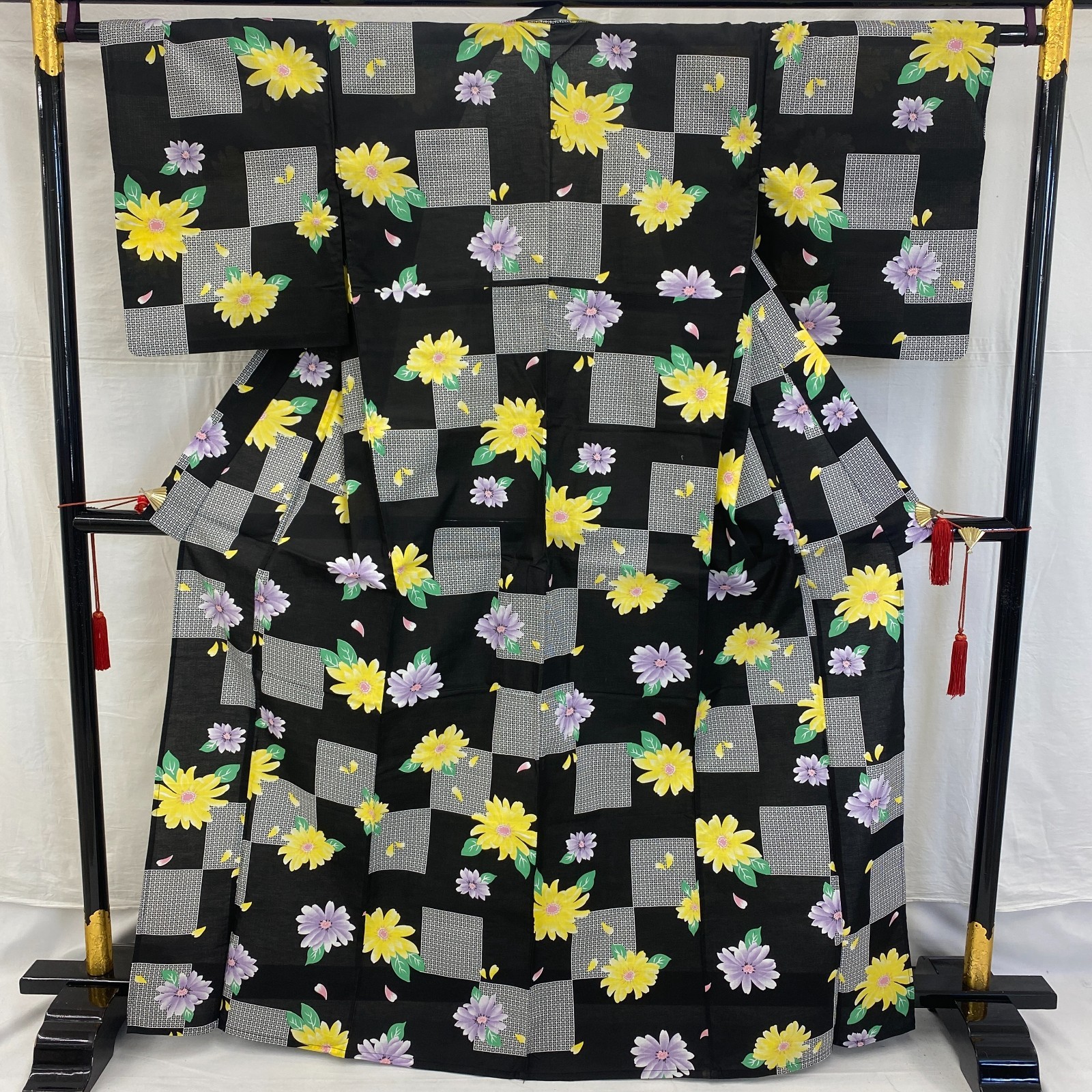 Japanese Vintage Kimono Yukata Cotton Black No Lining Traditional Length 65 in