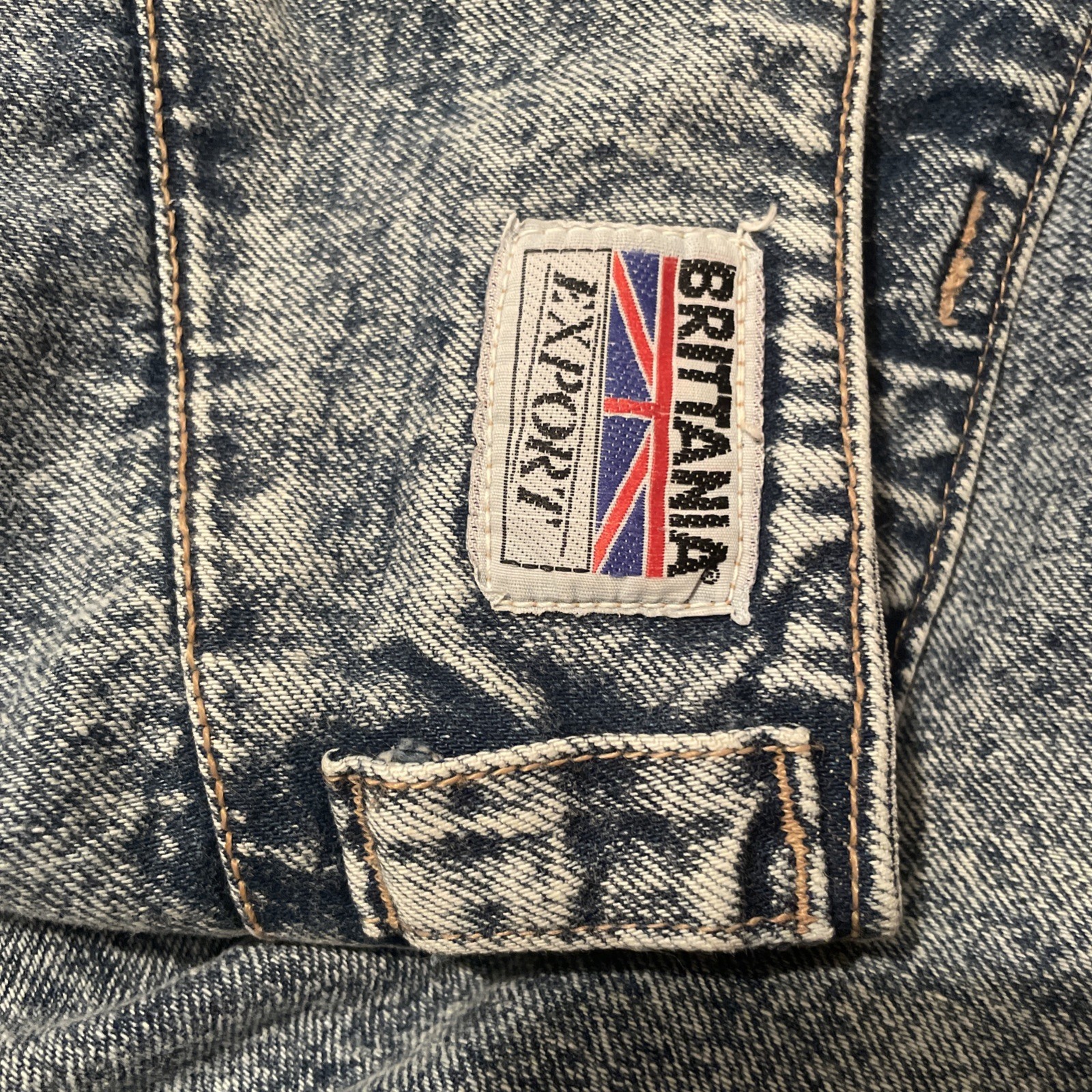 80s-90s VTG Brittania Export Stone Acid Wash High Waisted Mom Shorts Denim Sz 12