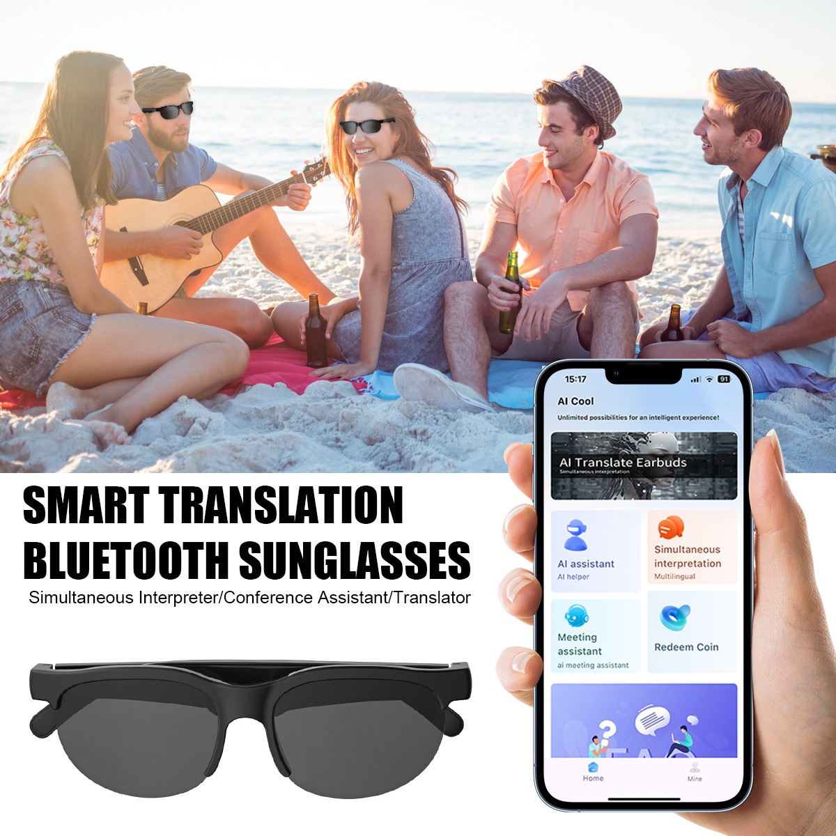 Feature: Bluetooth Calls,Music ,Remote control,Voice Assistant,Sunglasses