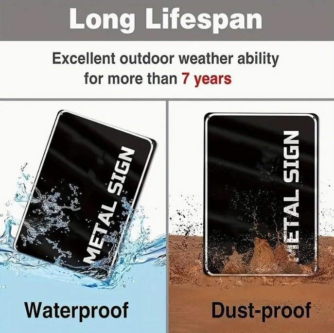 VINTAGE DESIGN: Classic distressed metal sign featuring humorous "Beware of Tiny