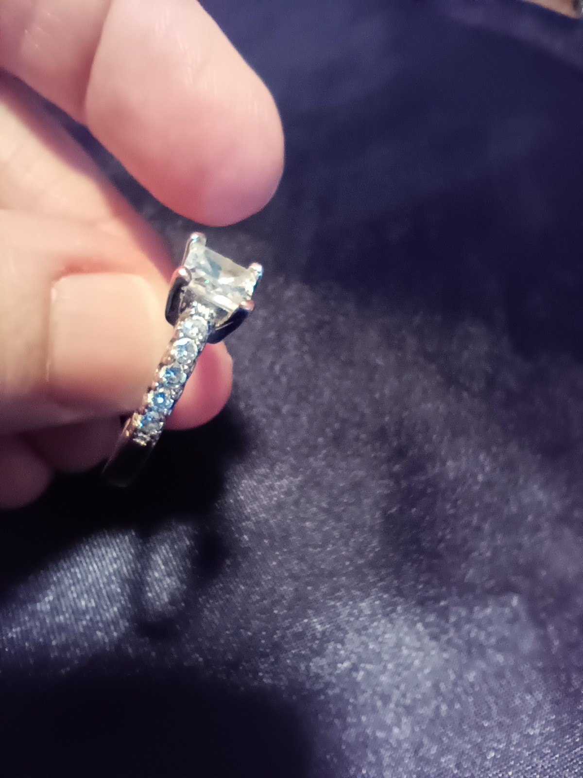 как выглядит Sterling Silver Ring With Square Center CZ Round Side Accent CZs. Womens 8.75 фото