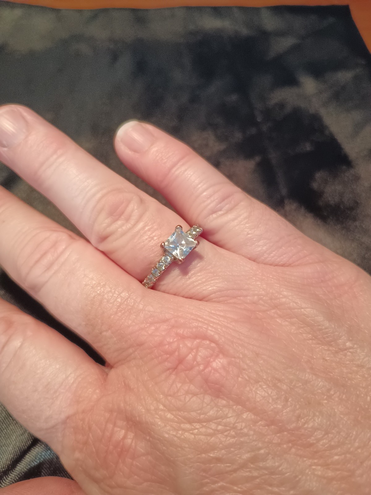 Sterling Silver Ring With Square Center CZ Round Side Accent CZs. Women's 8.75