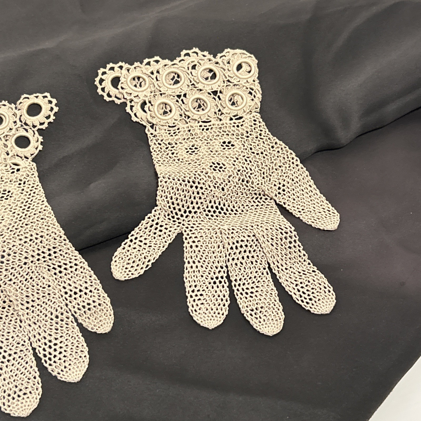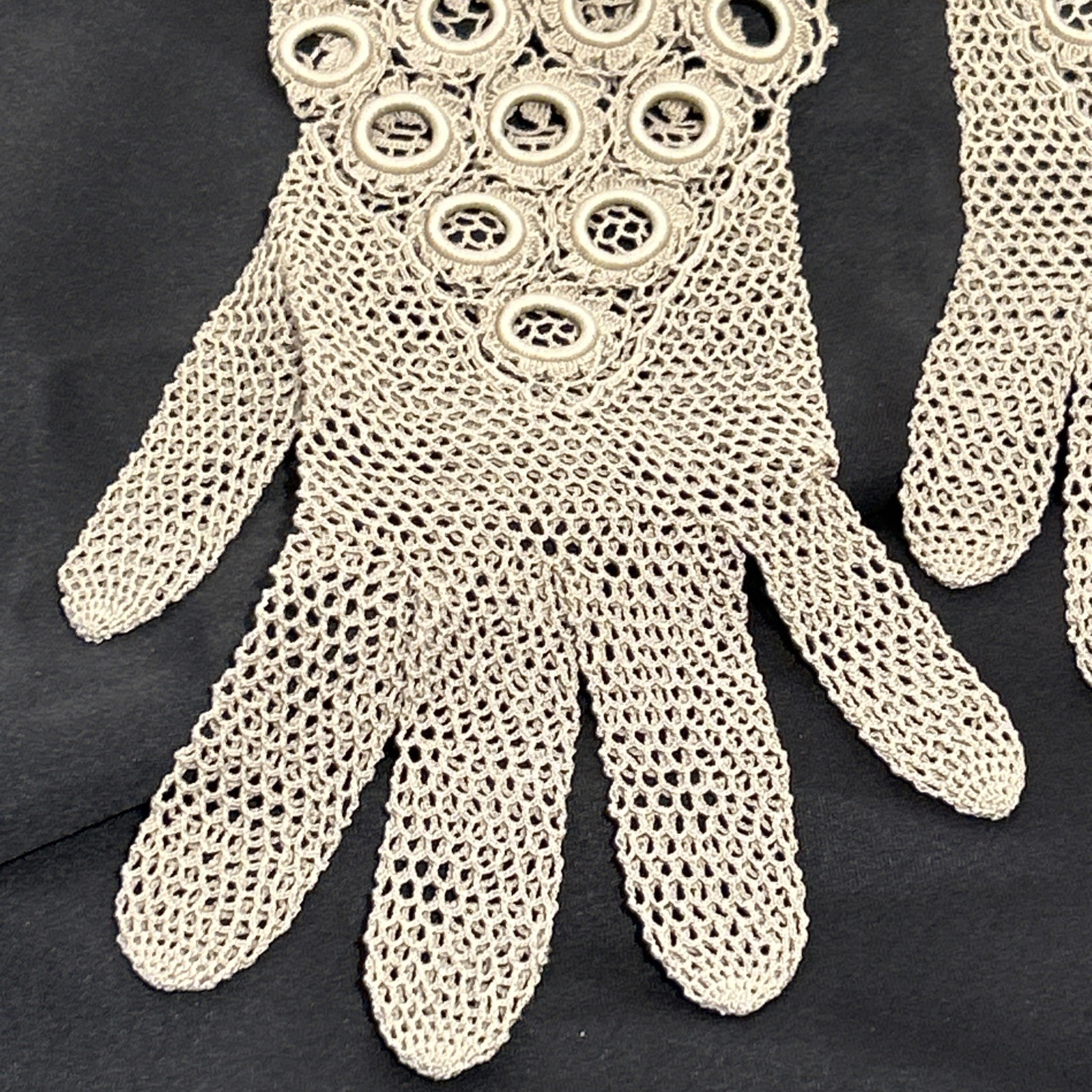Antique Victorian Lace Crochet Tea Gloves with Scalloped Fancy Cuffs