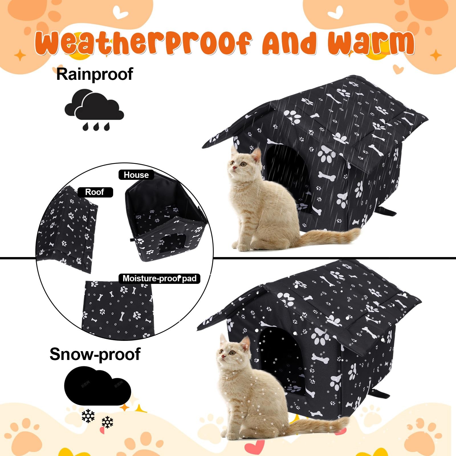 4 Pcs Outdoor Cat House Stray Cats Shelter Weatherproof outside Cat House Indoor