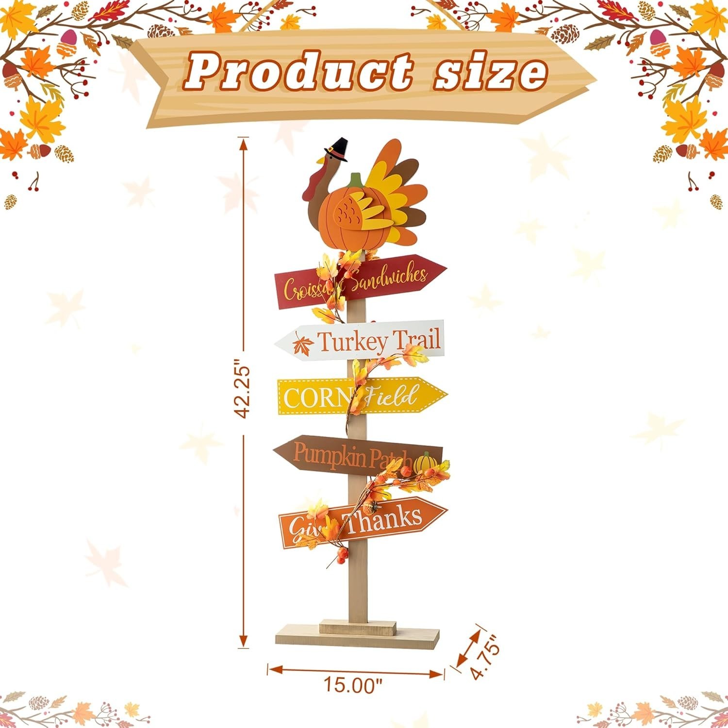 42.75'' Thanksgiving Wooden Turkey Porch Sign - Rustic Fall Decor for Home