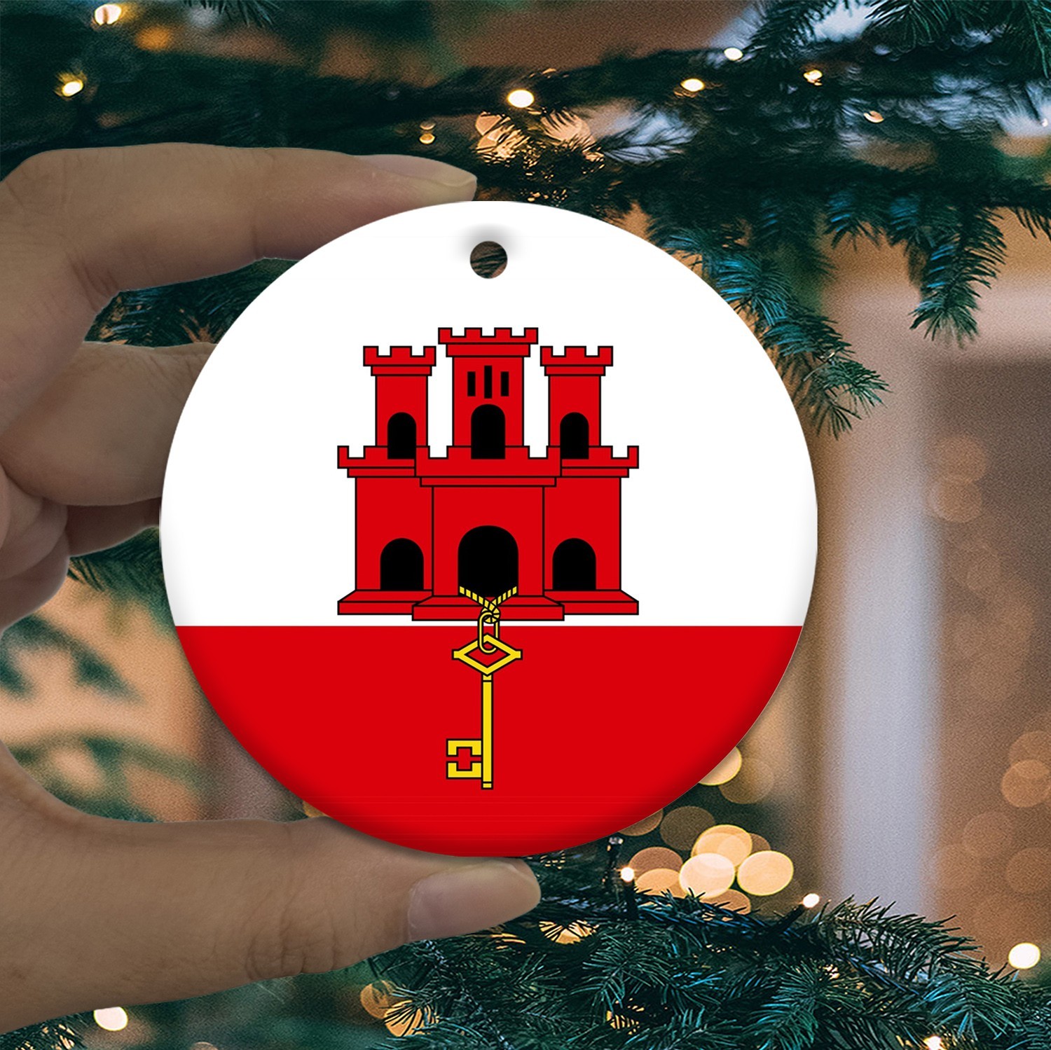 как выглядит Gibraltar Flag Round Christmas ornament city travel souvenir фото