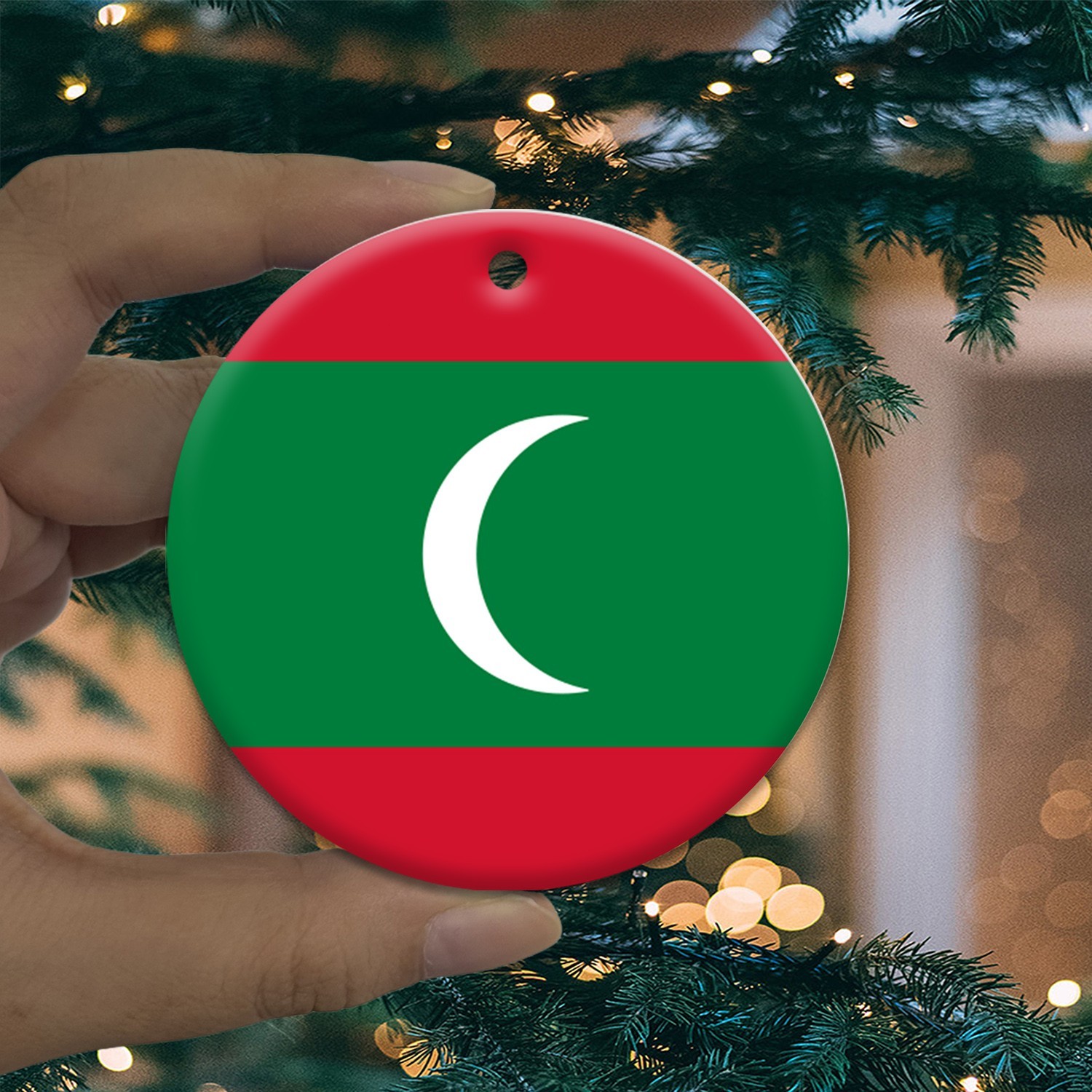 как выглядит Maldives Flag Round Christmas ornament city travel souvenir фото