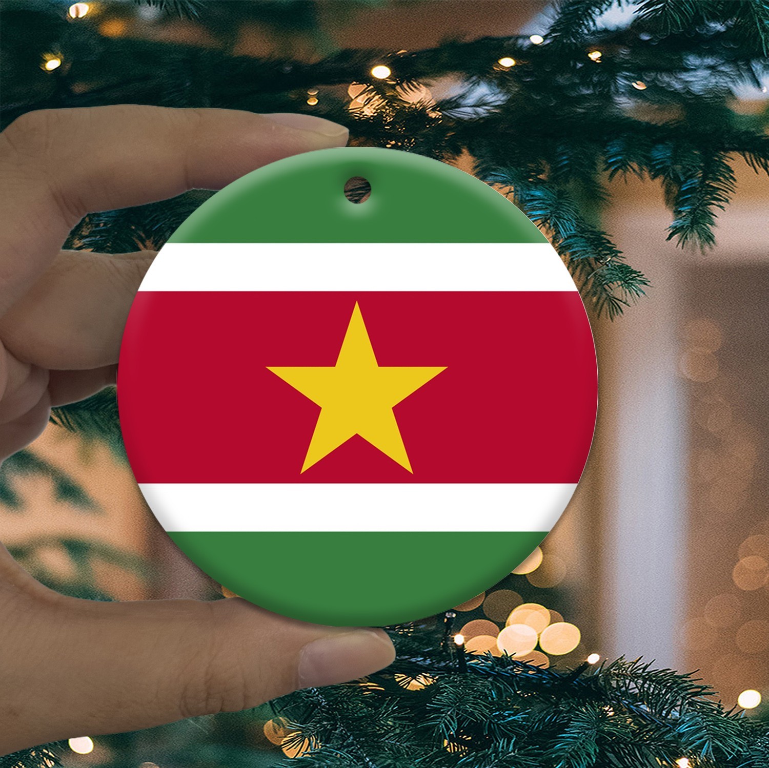 как выглядит Suriname Flag Round Christmas ornament city travel souvenir фото