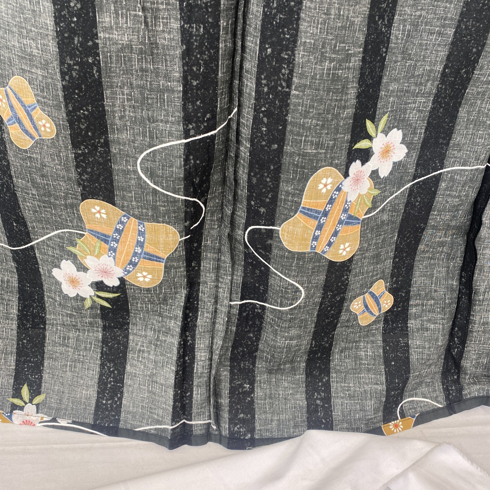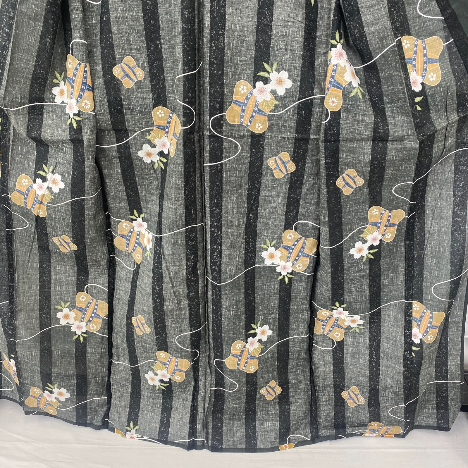 Japanese Vintage Kimono Yukata Cotton Black No Lining Traditional Length 64 in