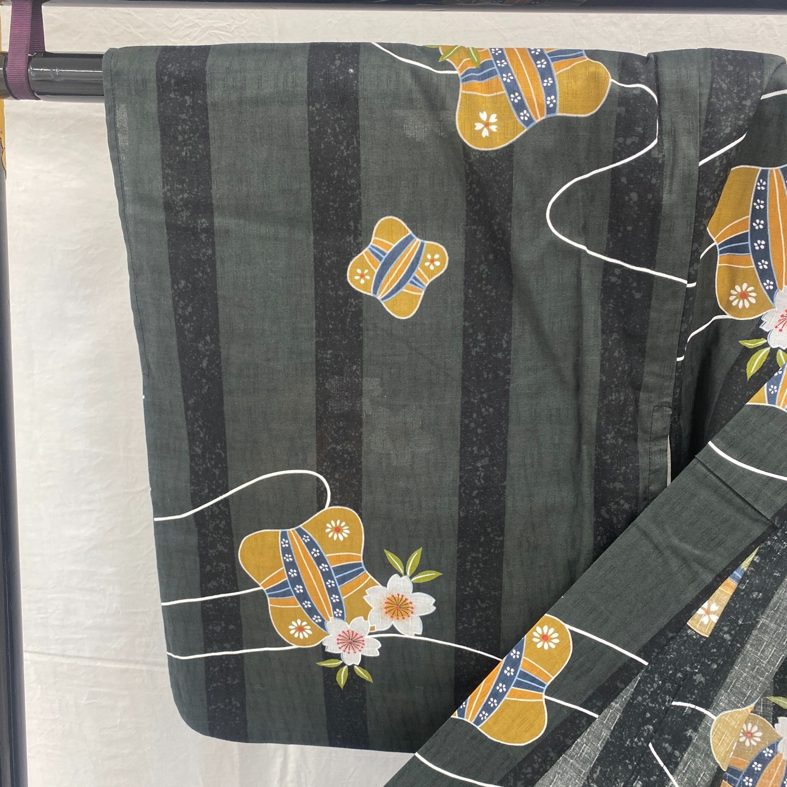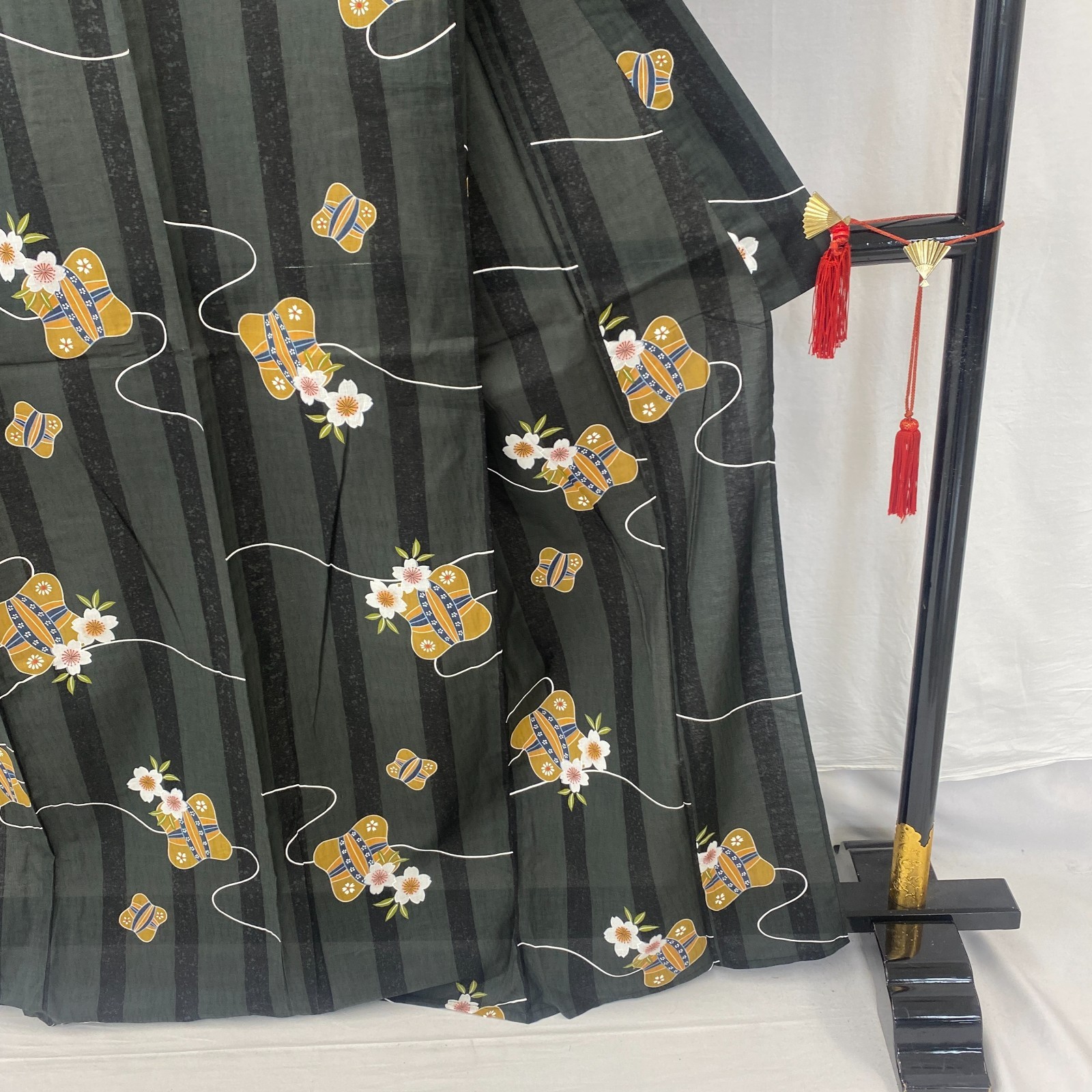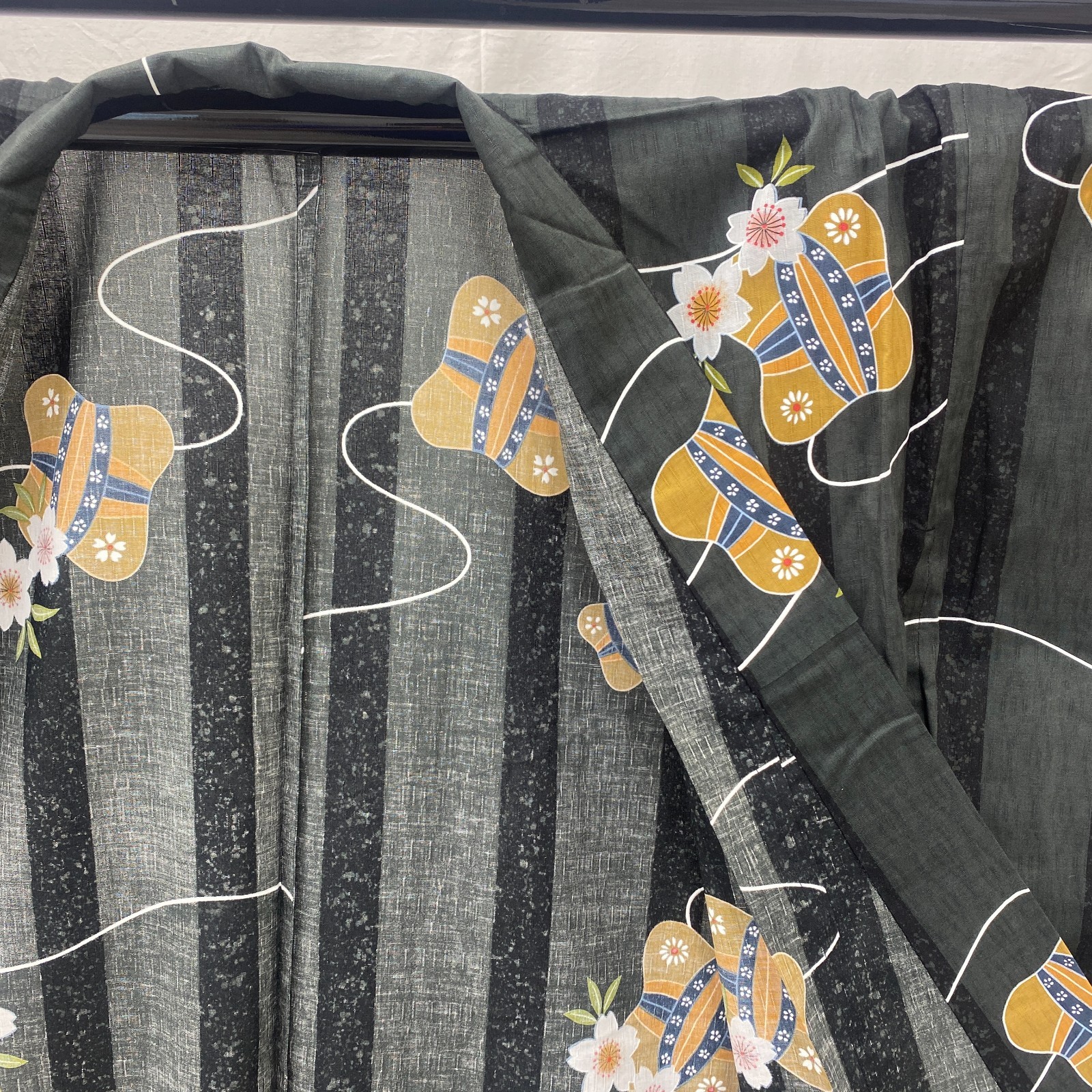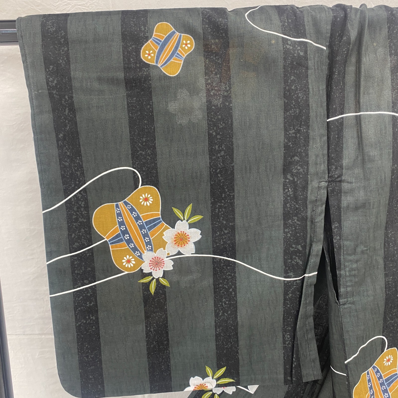 как выглядит Japanese Vintage Kimono Yukata Cotton Black No Lining Traditional Length 64 in фото