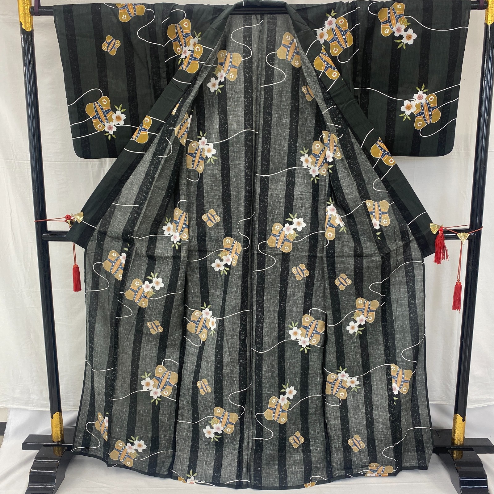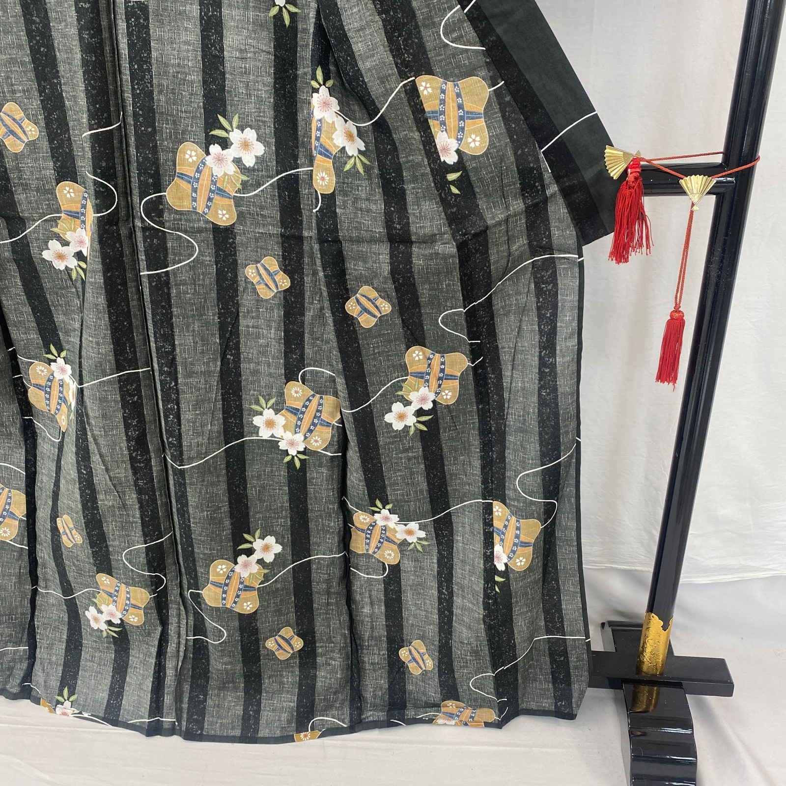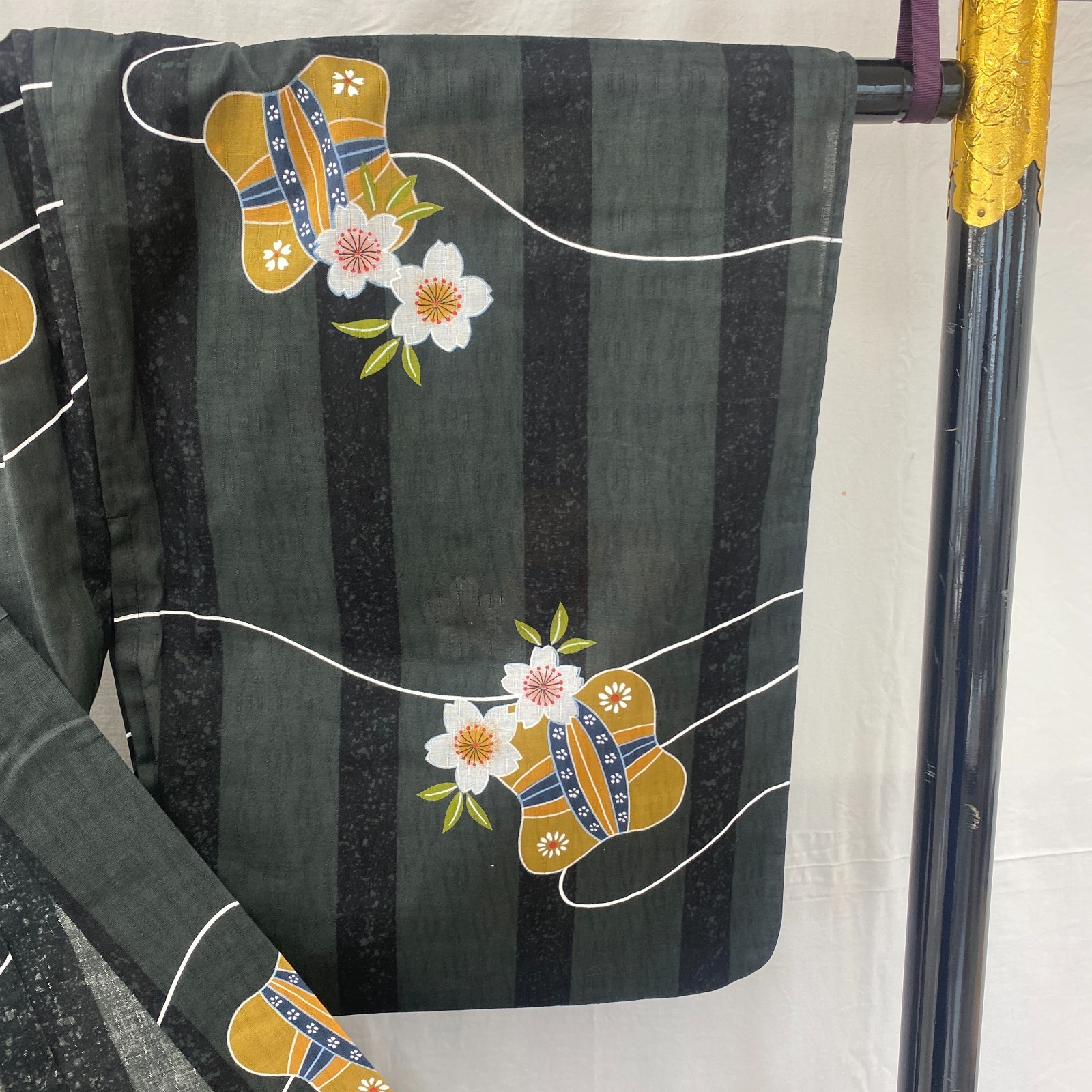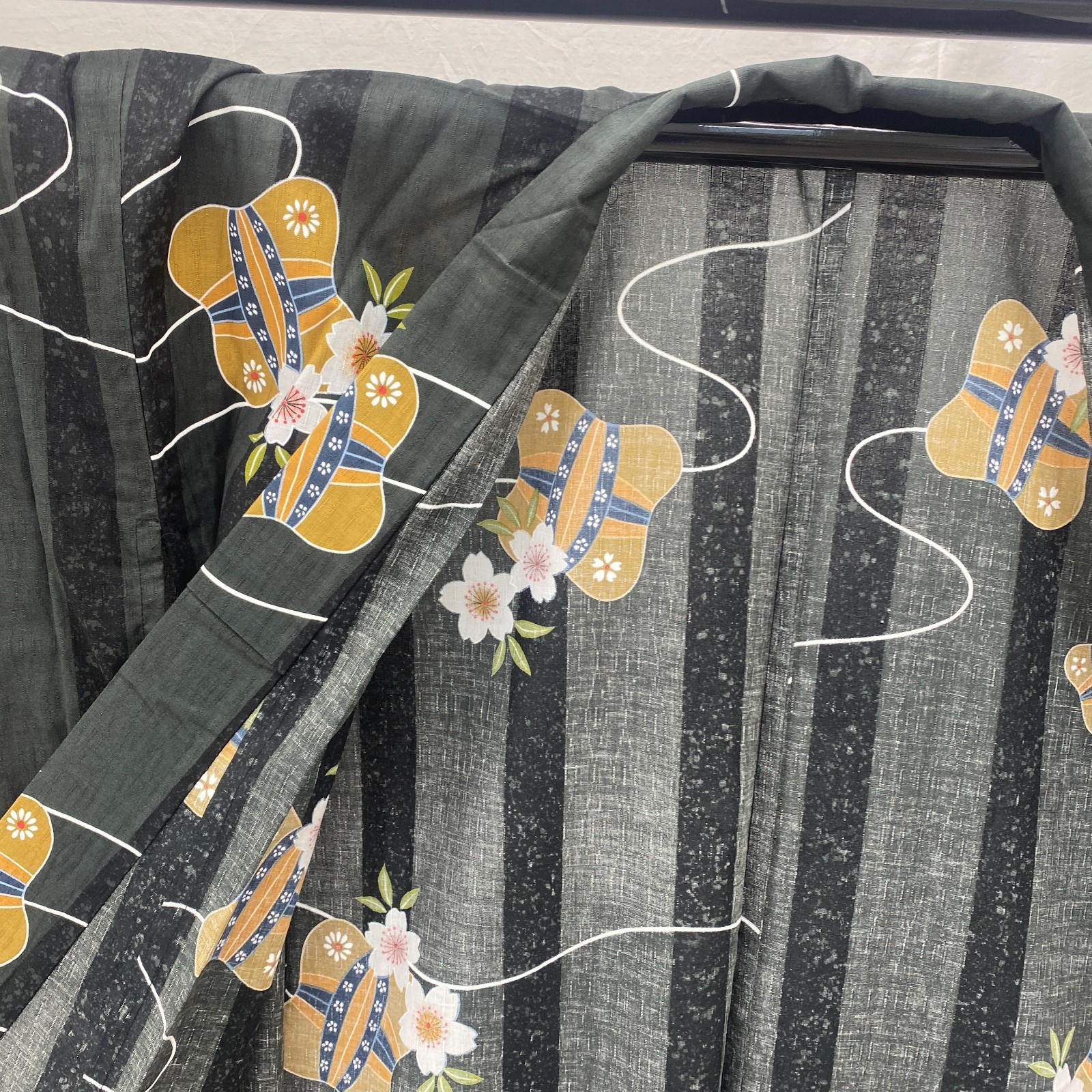 как выглядит Japanese Vintage Kimono Yukata Cotton Black No Lining Traditional Length 64 in фото