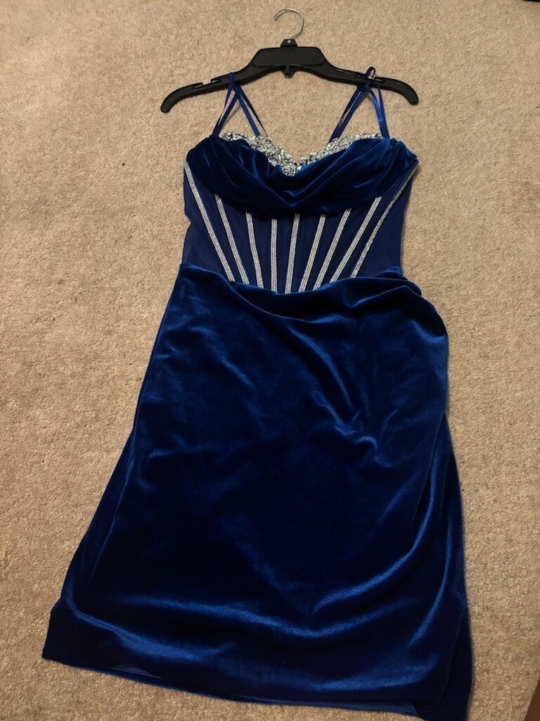 как выглядит Velvet Blue Strapy Corset Homecoming Dress Small фото