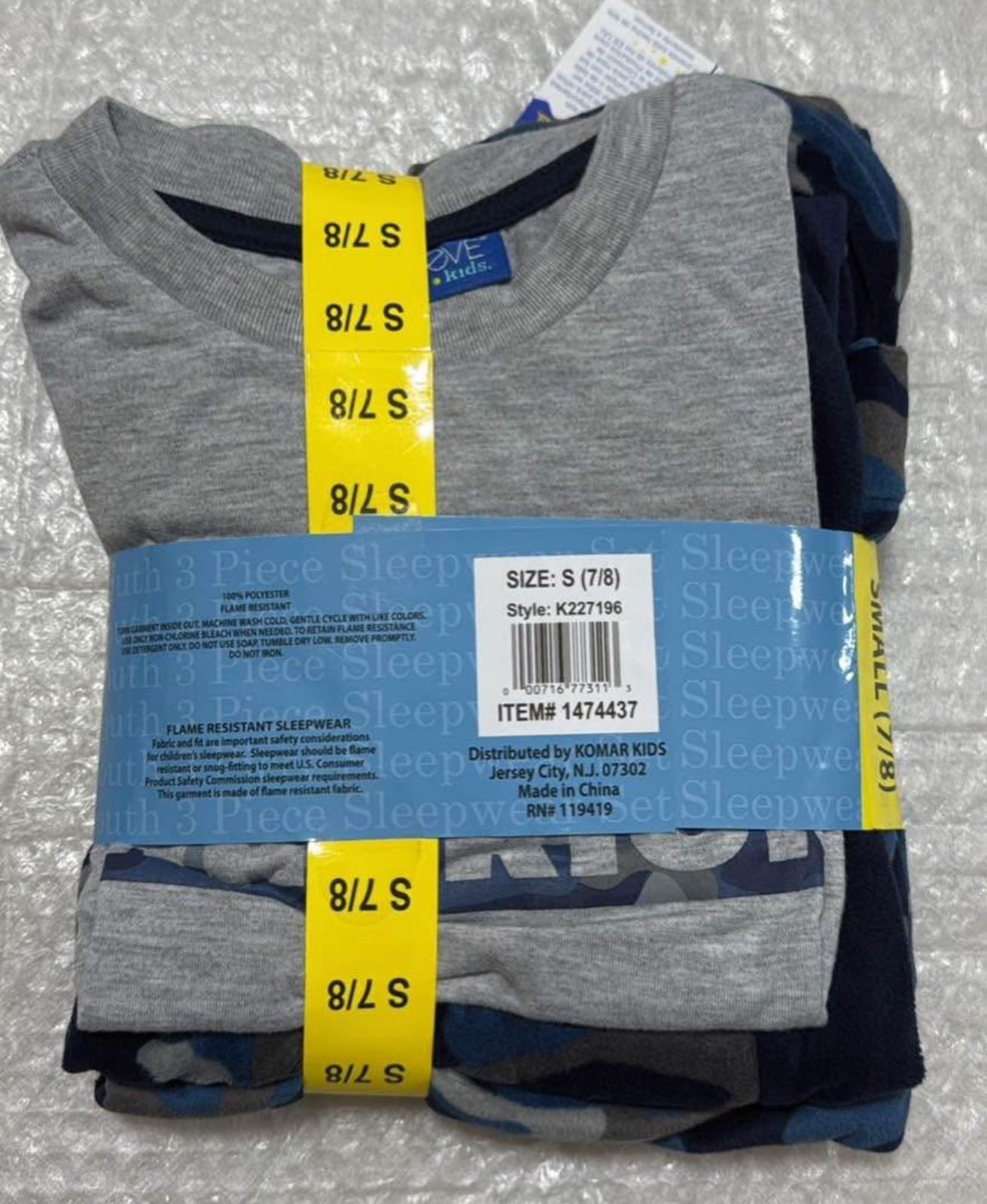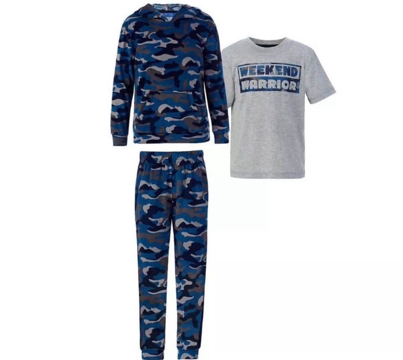 Saint Eve Boy's 3-piece Pajama Set Pant Tee Hoodie CAMO, S 7/8 . NWT