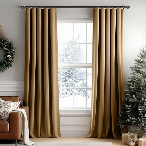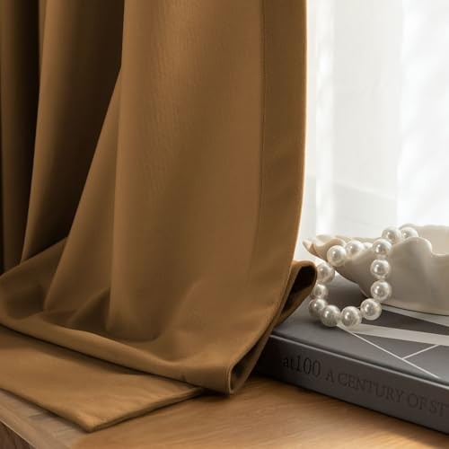 Golden Brown Velvet Curtains 96 Inches Long 52W x 96L Pack of 2 Gold Brown