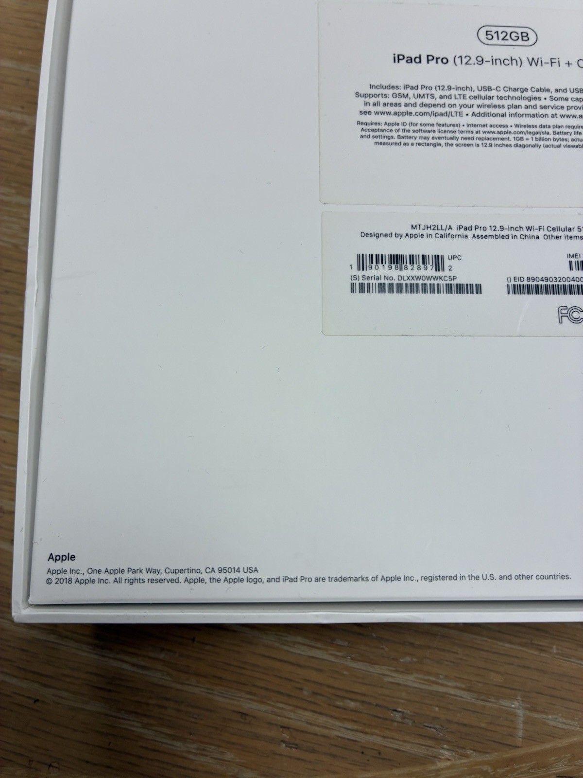 Apple iPad Pro BOX ONLY 12.9-inch 512GB 2018