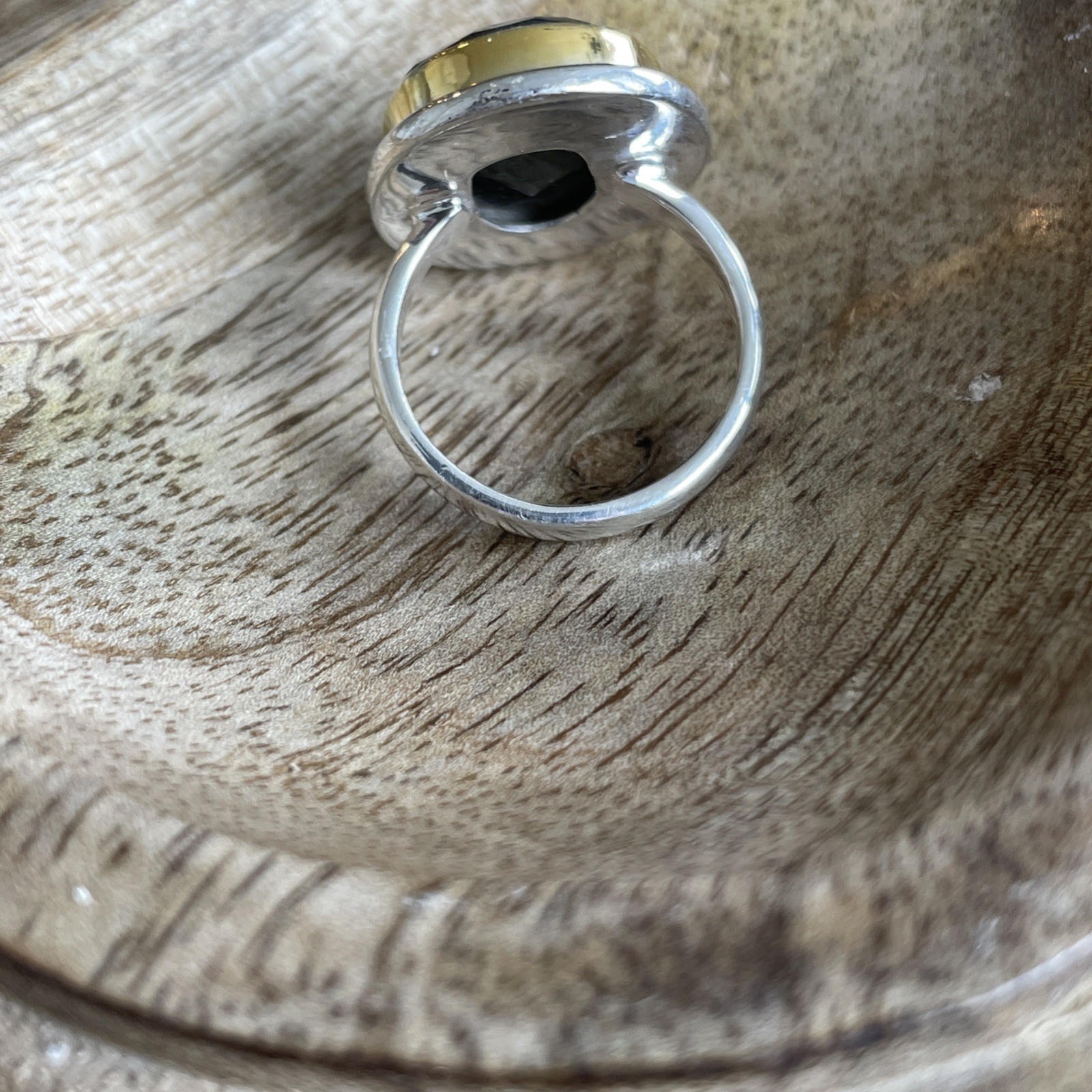 как выглядит NEW Sundance Catalog JEWELRY Silver Gold Grand Blue Labradorite Ring 8 фото