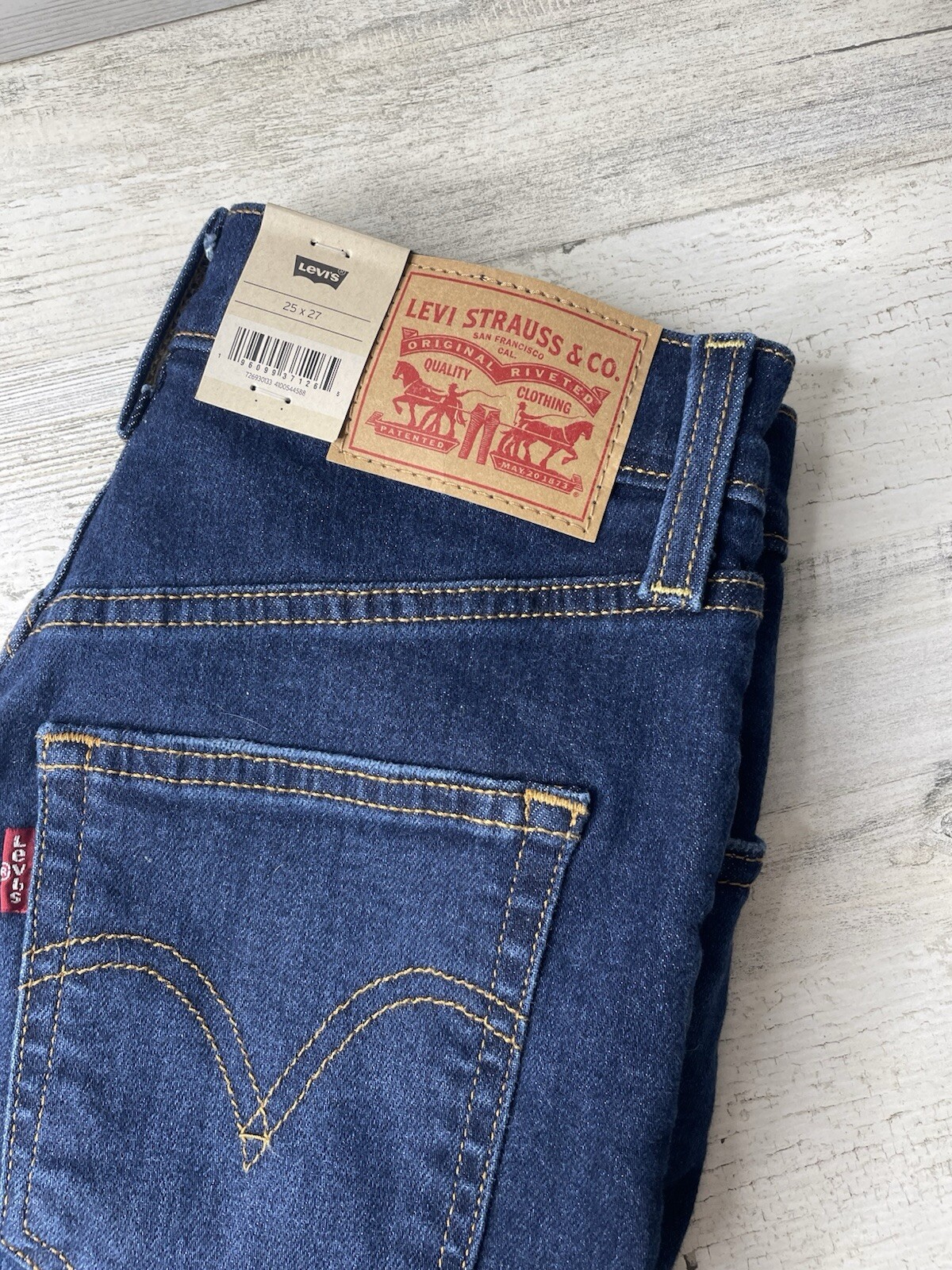 как выглядит Levis Jeans Ribcage Straight Ankle Blue Dark Denim Distressed Womens Sz: 25x27 фото