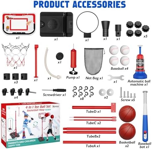 4 in 1 Kids Basketball Hoop and T Ball Set Adjustable