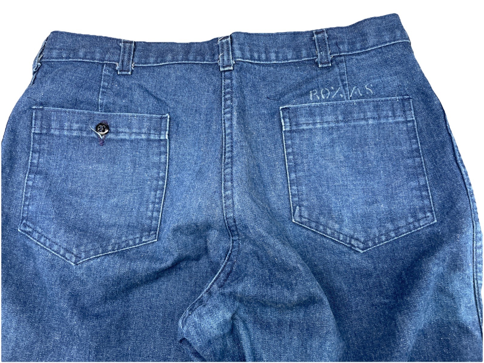 как выглядит VTG 70-80 s US Navy Utility FR Denim Bell Bottom Jeans Stenciled 33x26 Hemmed фото