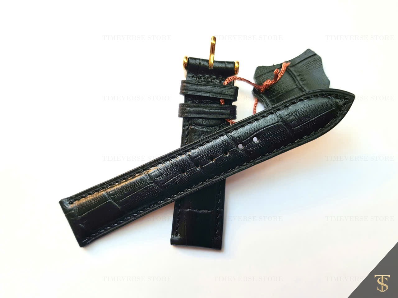 как выглядит 20mm Real Cowhide Croc Embossed Leather Strap  Black  Handmade Vietnam фото